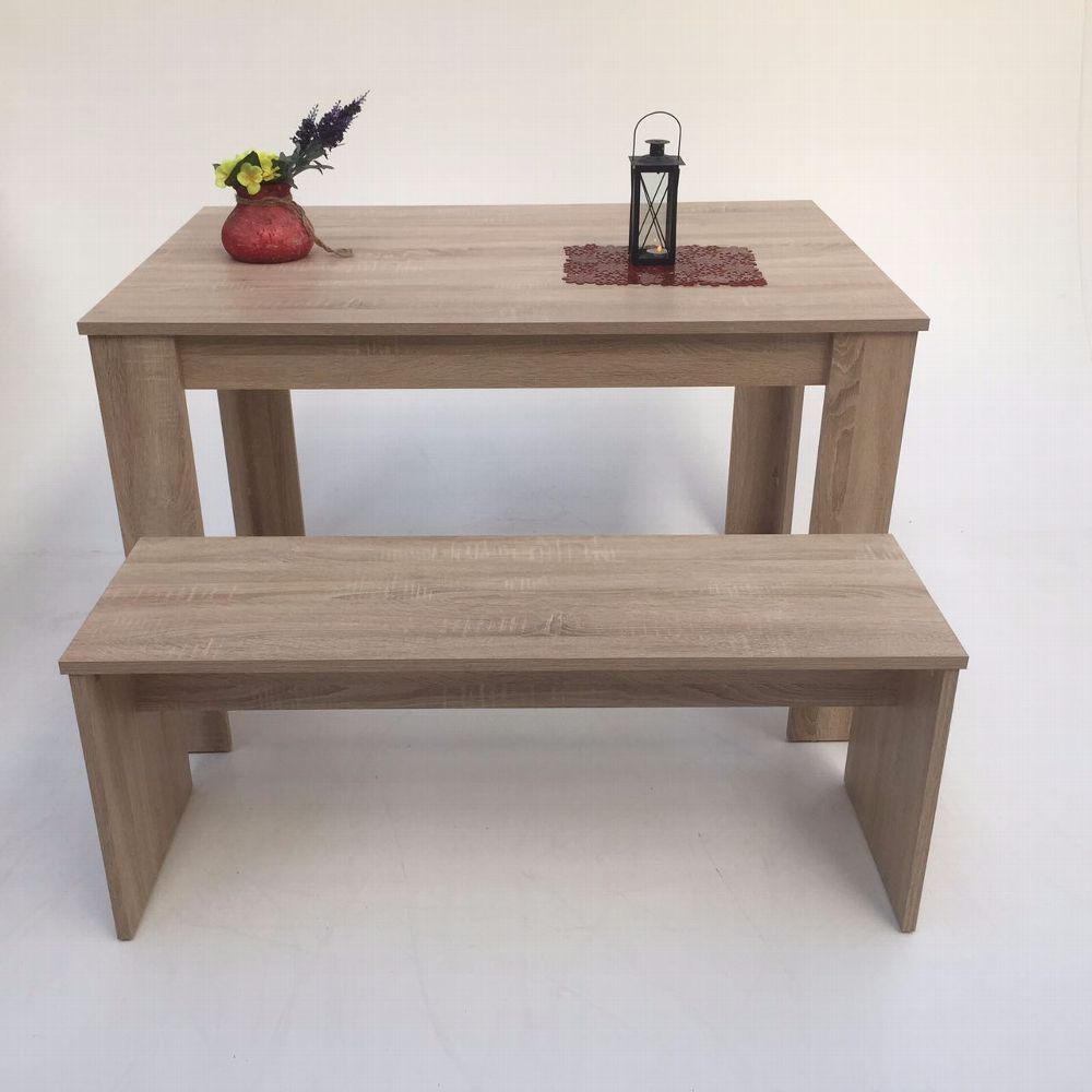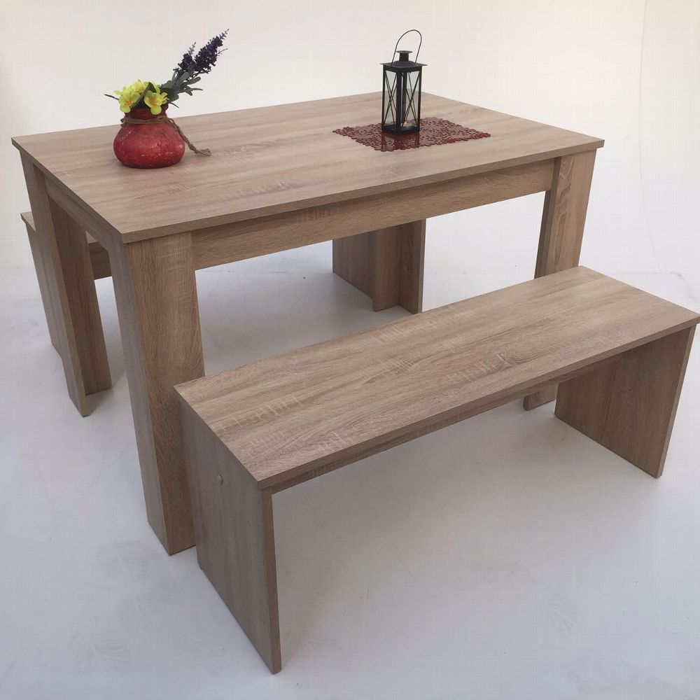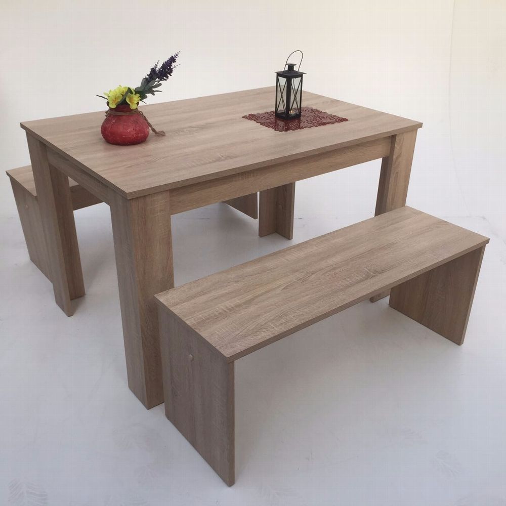 Esstischgruppe + Bänke 3er Set 110x70cm Sonoma Eiche hell Sägerau Made in Germany