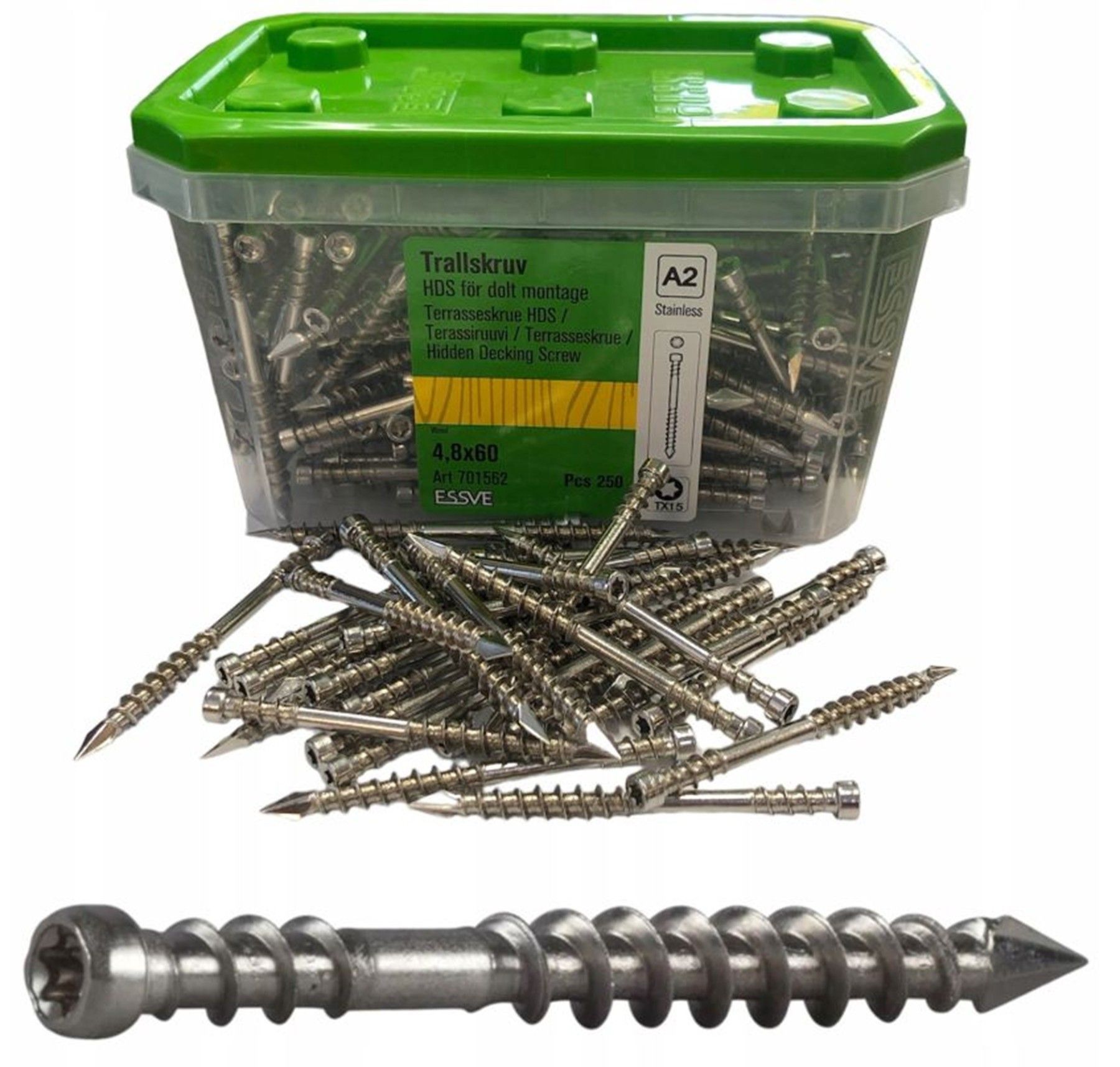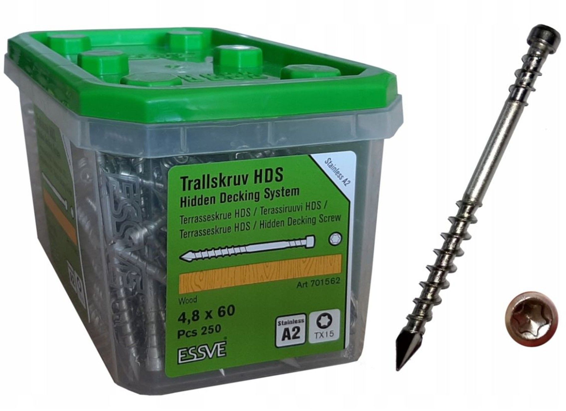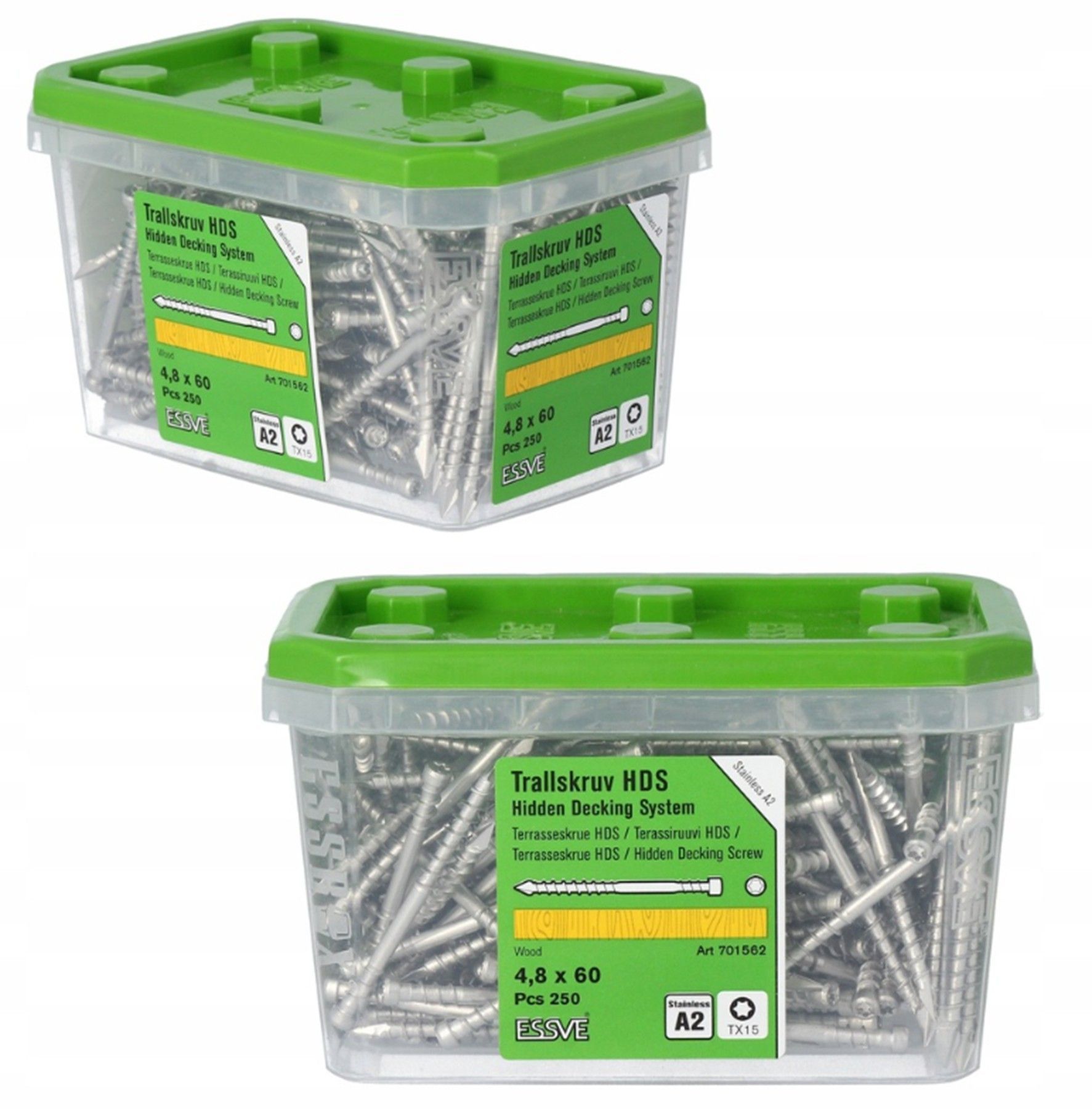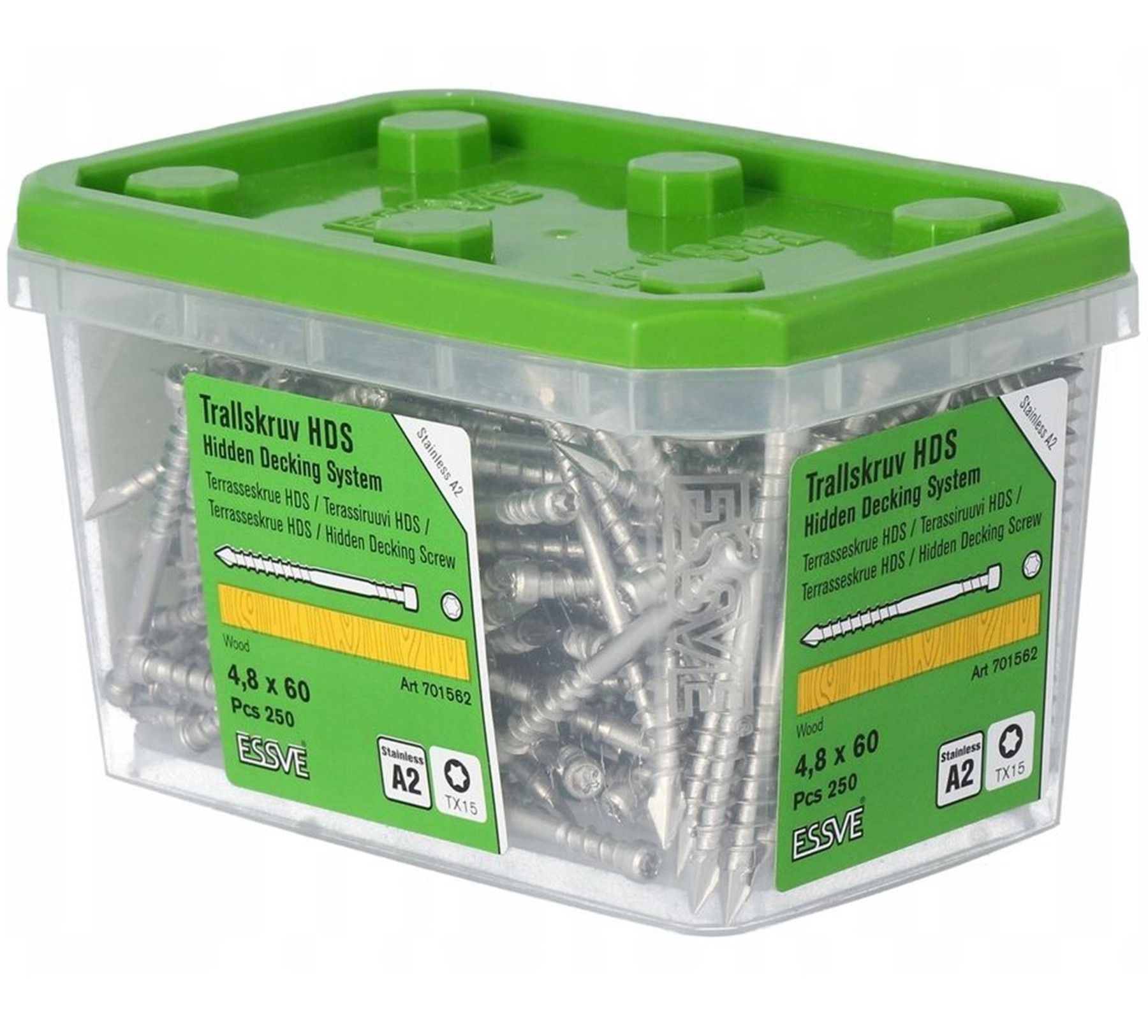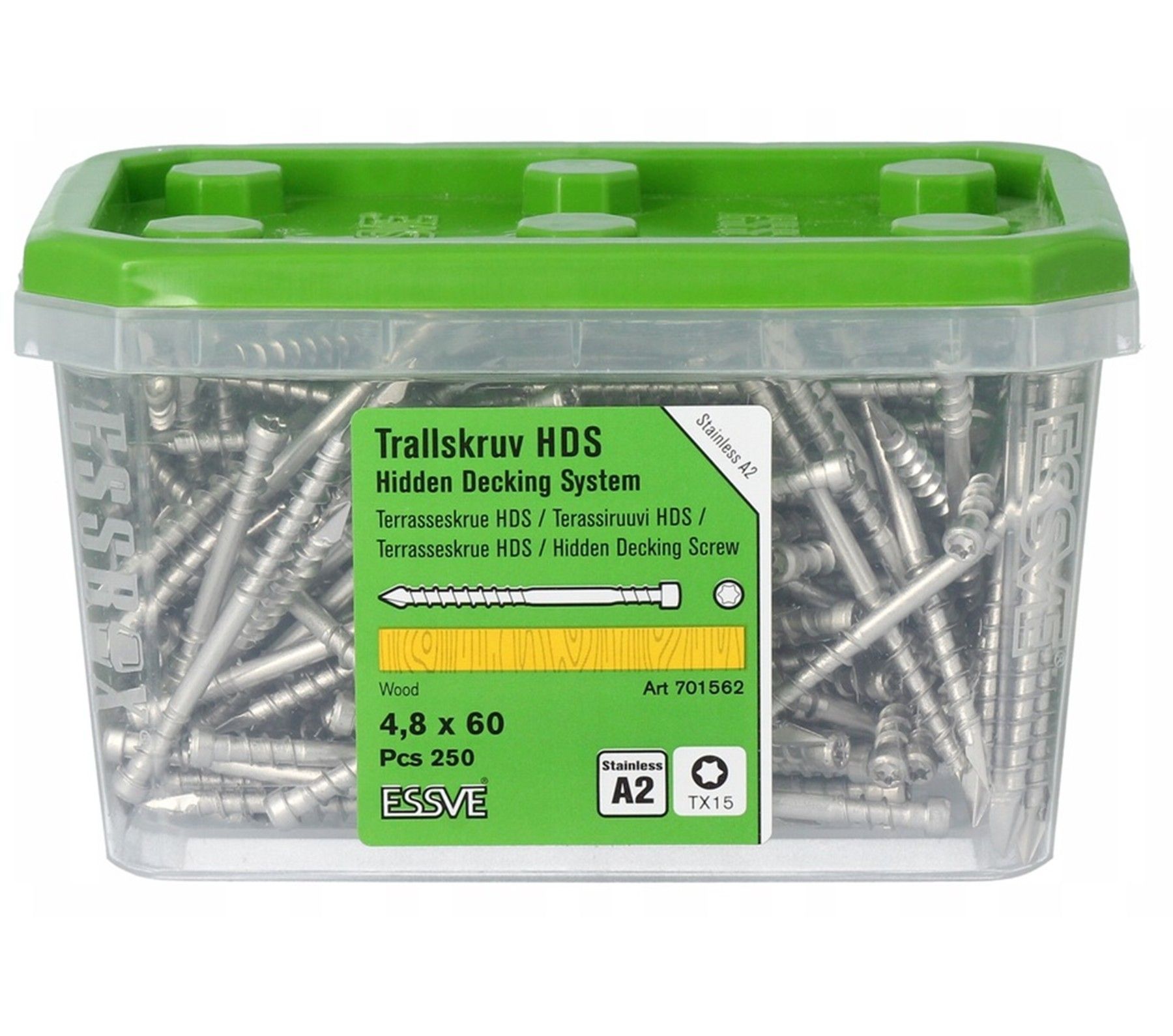 ESSVE HDS Terrassenschrauben A2 Edelstahl verdeckte Montage 4,8 x 60 mm 250 St