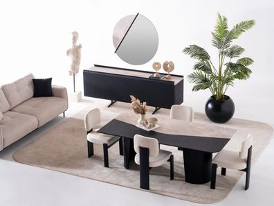 Elegantes Beiges Esszimmer Set mit Esstisch, Stühlen, Sideboard