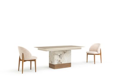 Exklusives Esszimmer-Set Abgerundeter Esstisch Designer Küchenstühle