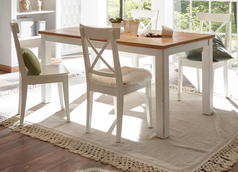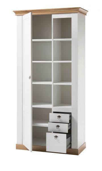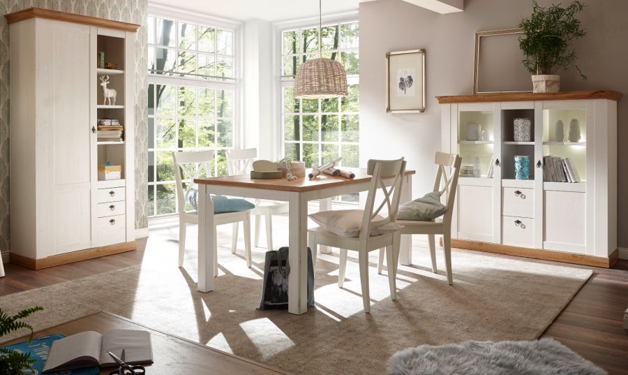 Esszimmer Möbel komplett Set 3-tlg. Vitrine Buffet Tisch Eiche weiß Pinie Hemsby