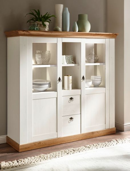 Esszimmer Möbel komplett Set 4-tlg. Highboard Esstisch Buffet Eiche weiß Hemsby