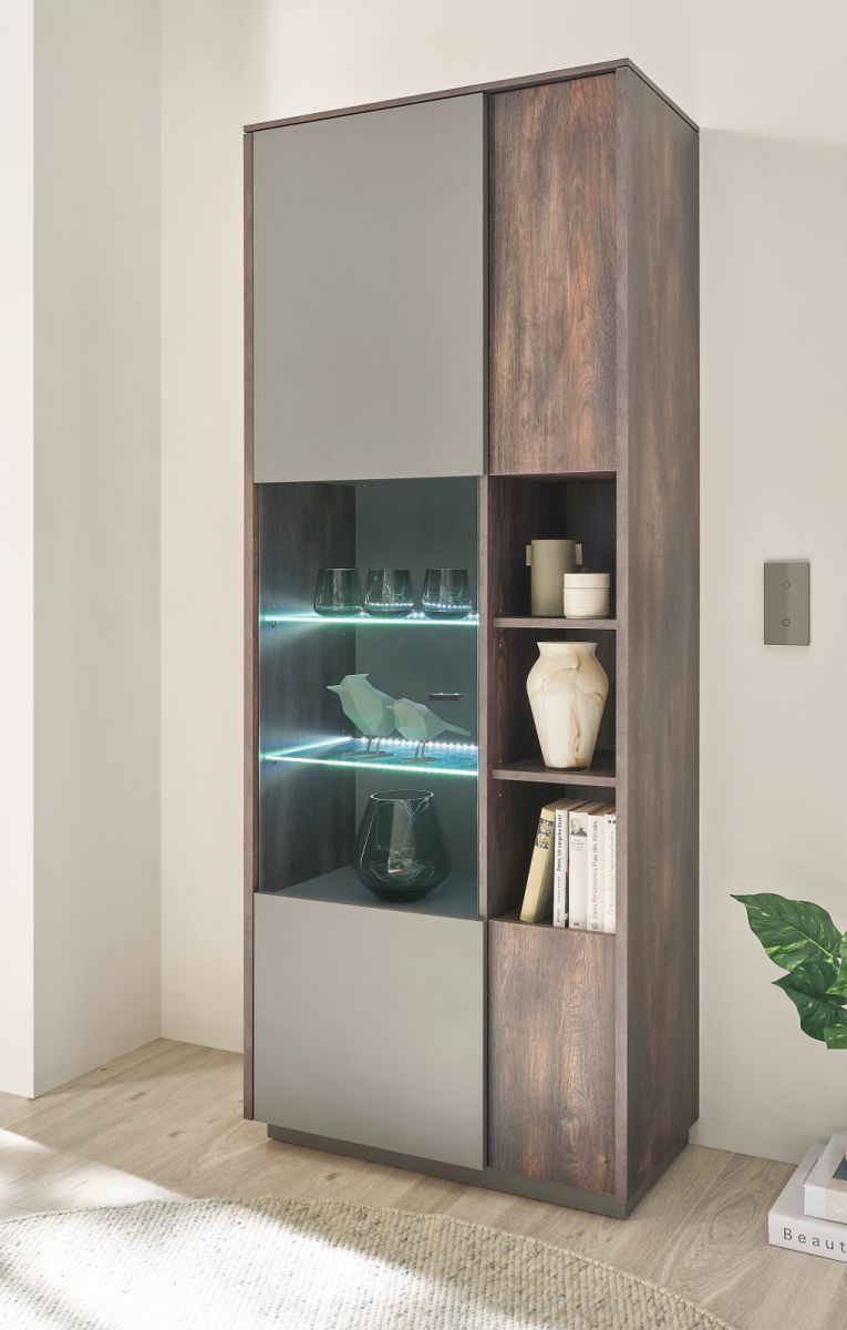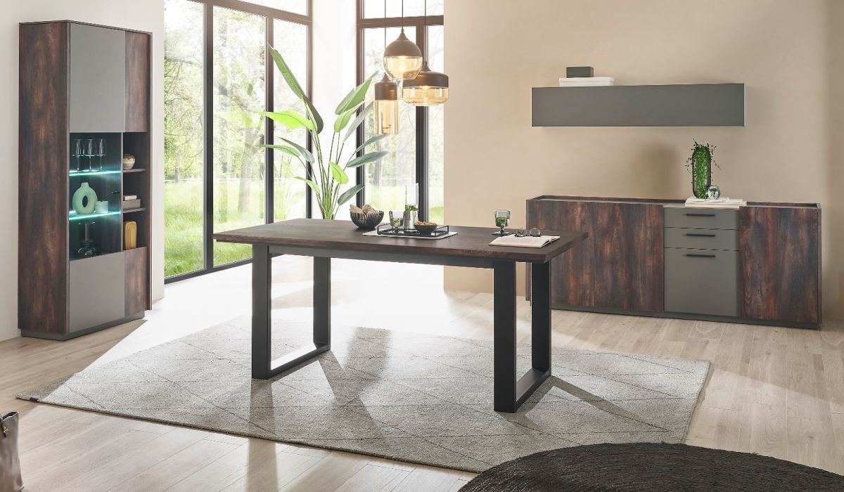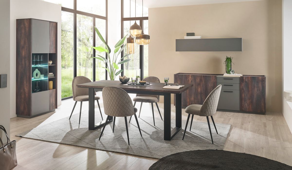 Esszimmer Möbel komplett Set 4-tlg mit Vitrine Esstisch Sideboard Eiche grau Piano