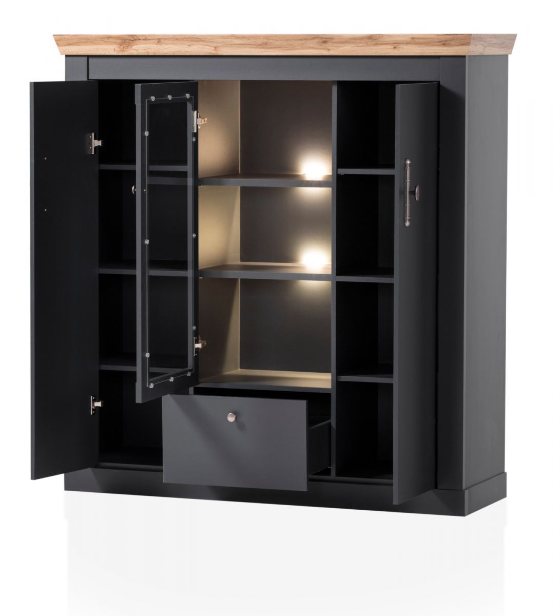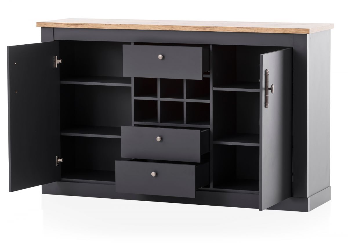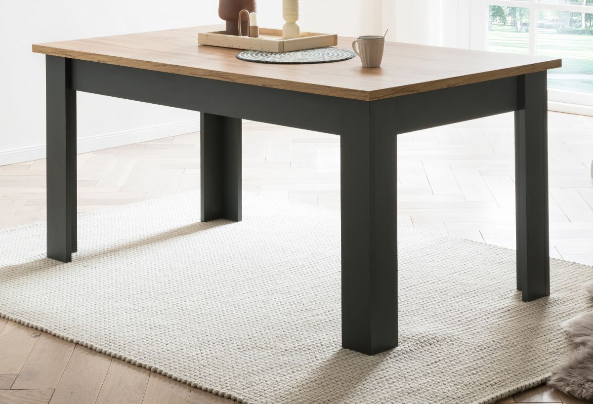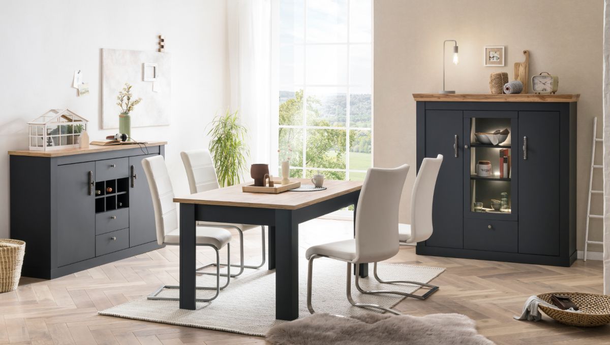 Esszimmer Möbel Set 3-tlg. mit Highboard Sideboard Esstisch grau Eiche Ribera
