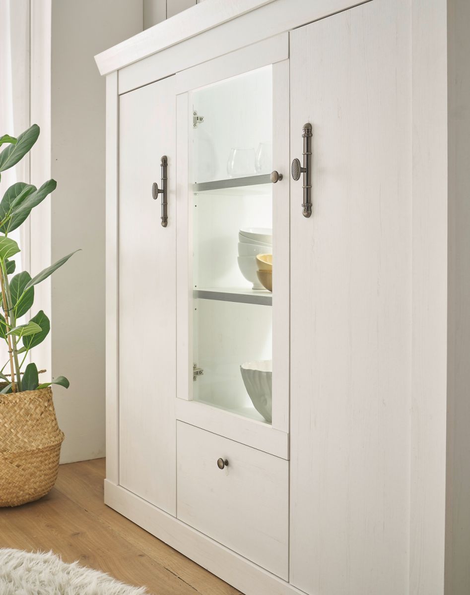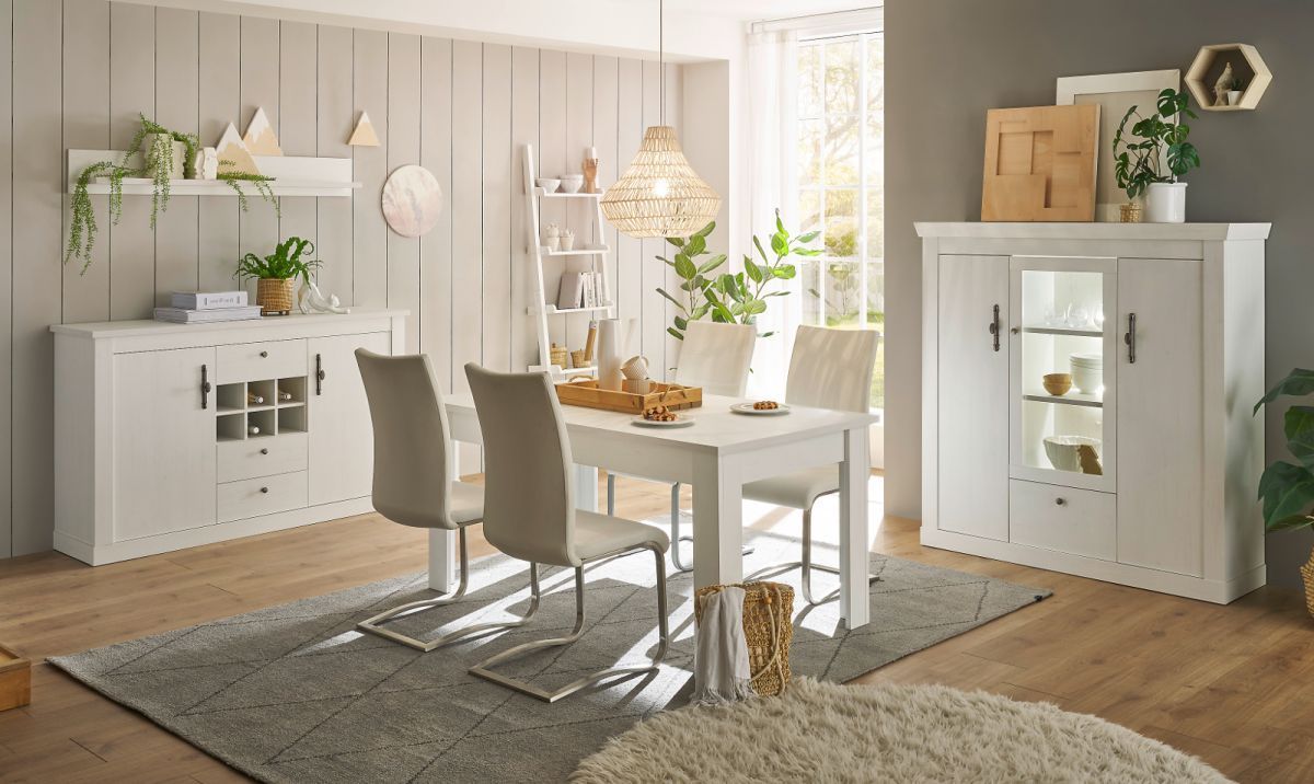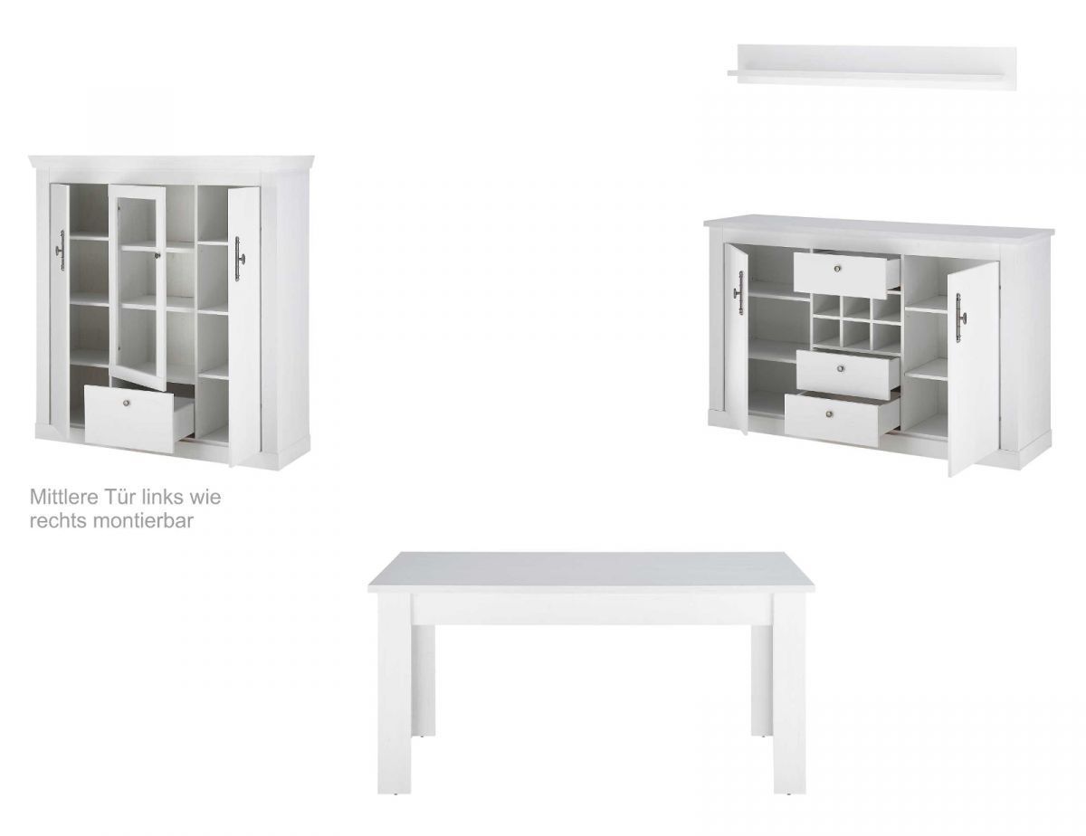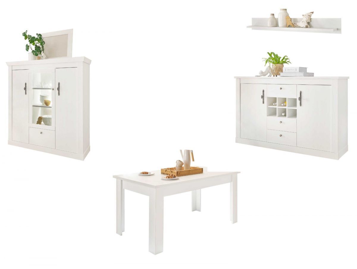 Esszimmer Möbel Set Highboard Sideboard Esstisch weiß Pinie Fiastra mit Soft-Close