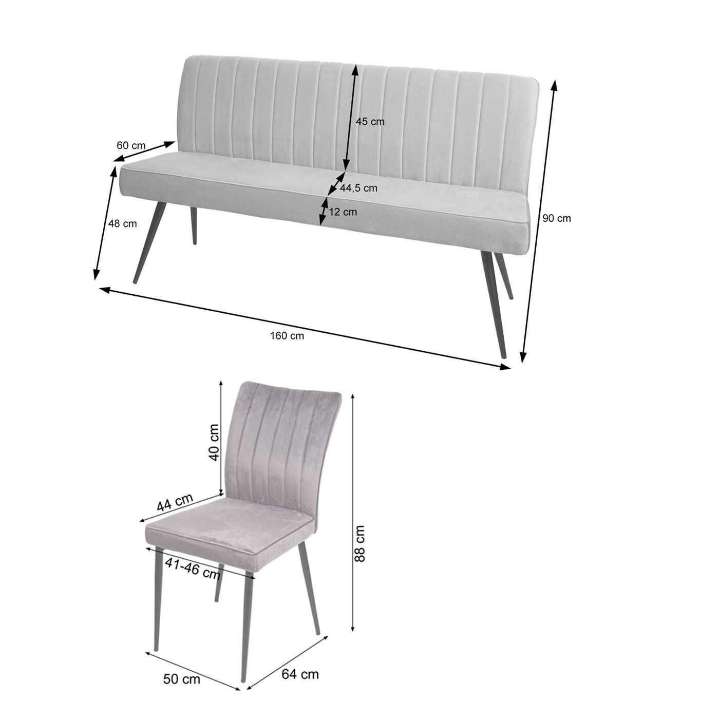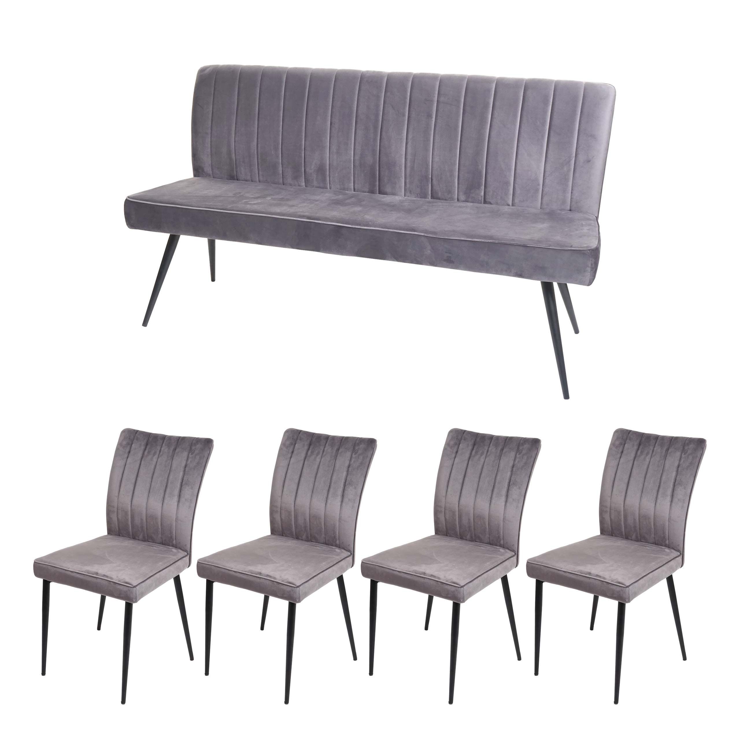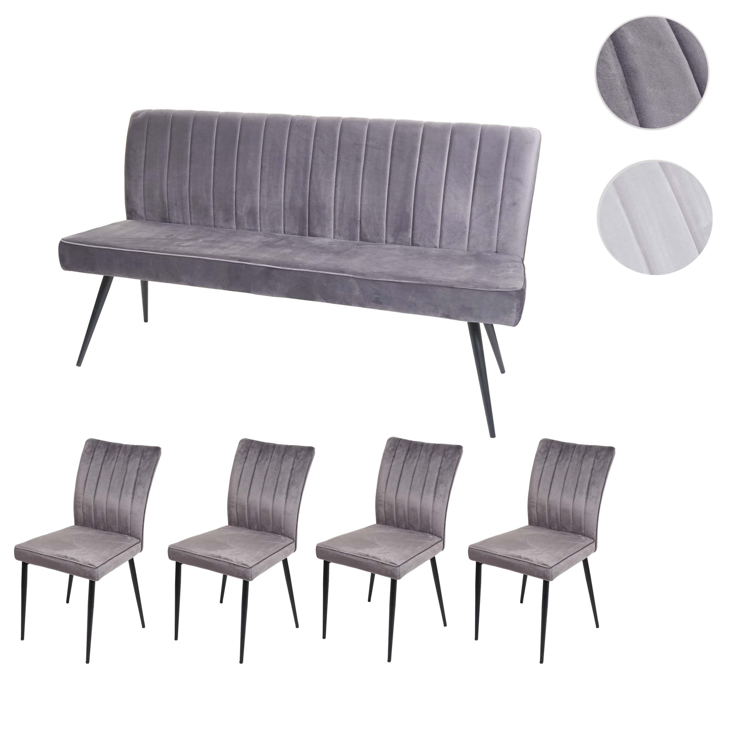 Mendler Esszimmer-Set HWC-K16, 4er-Set Stuhl+Sitzbank Esszimmergruppe Sitzgruppe, Samt Metall