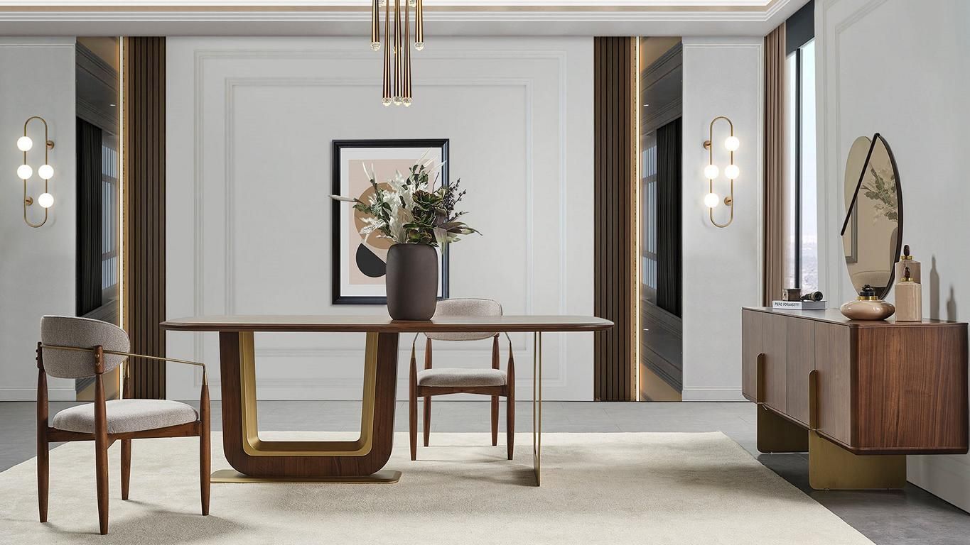 Esszimmer Set Modern Esstisch 4x Stühle und Anrichte mit Spiegel 7tlg