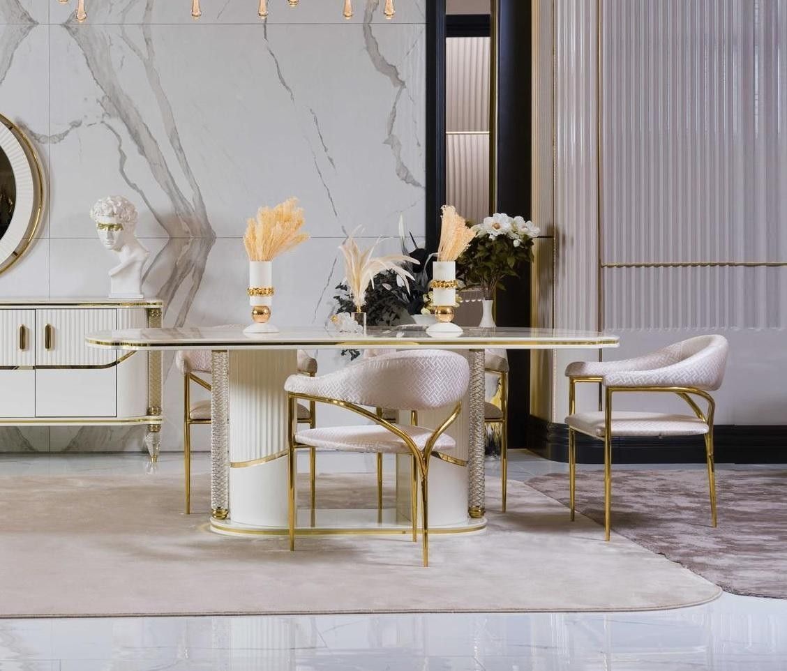 Esszimmer set Modern Esstisch + 6x Stühle Tisch Holz Polsterstuhl 7tlg. Gruppe