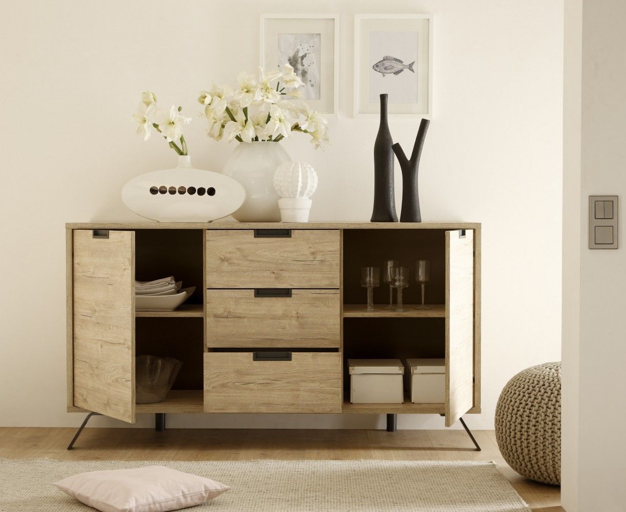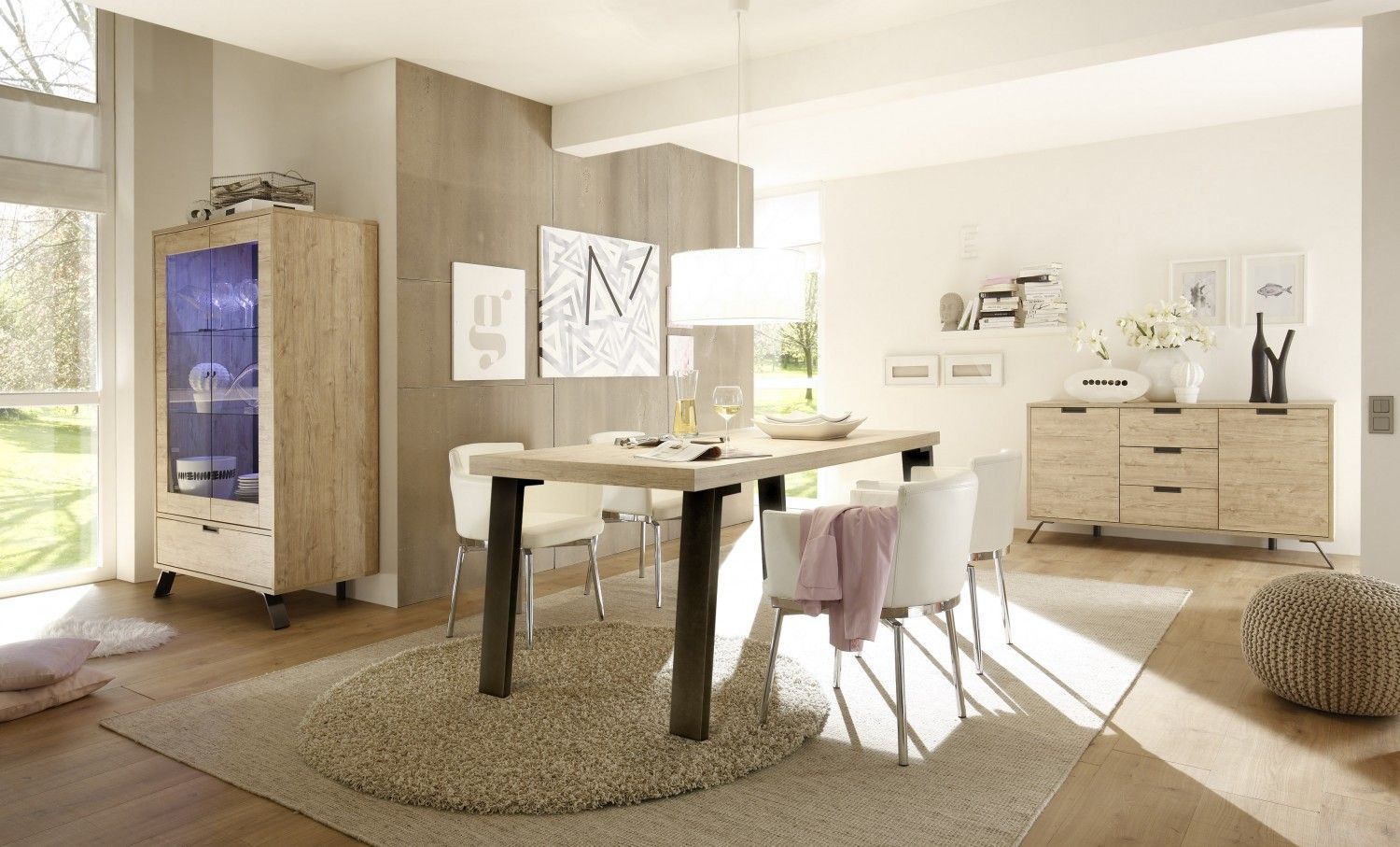 Esszimmer Set Pana in eiche 3tlg. Esstisch Tisch 205446-06 07 375446F Esszimmer Set "Pana" in eiche 1x Vitrine 2trg. "Pana" mit 2 Glastüren und 1 Schubkasten B H T ca. 106 176 50 cm die Beleuchtung ist optional erhältlich (bitte anfragen) 1x Sideboard "Pana" mit 2 Türen