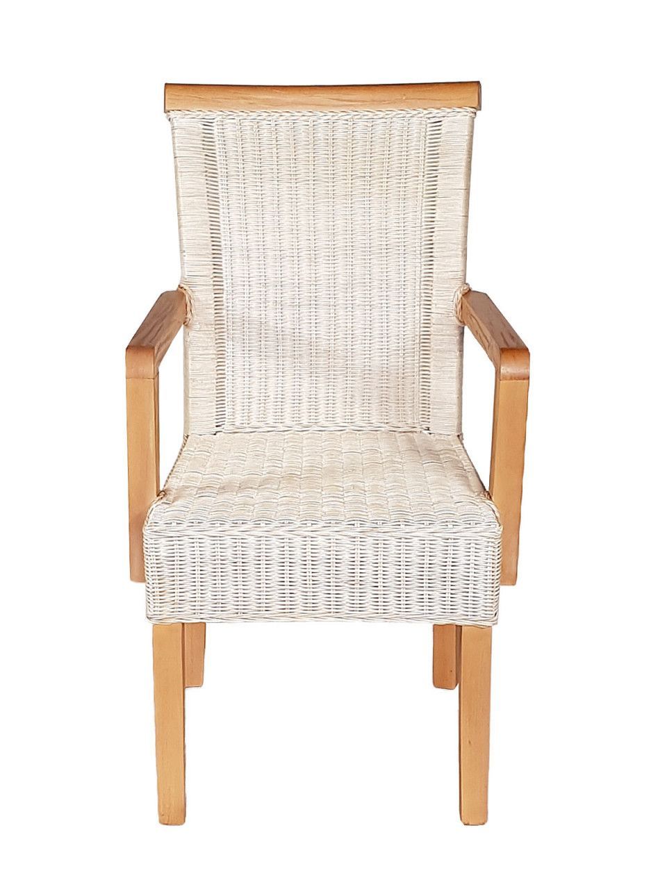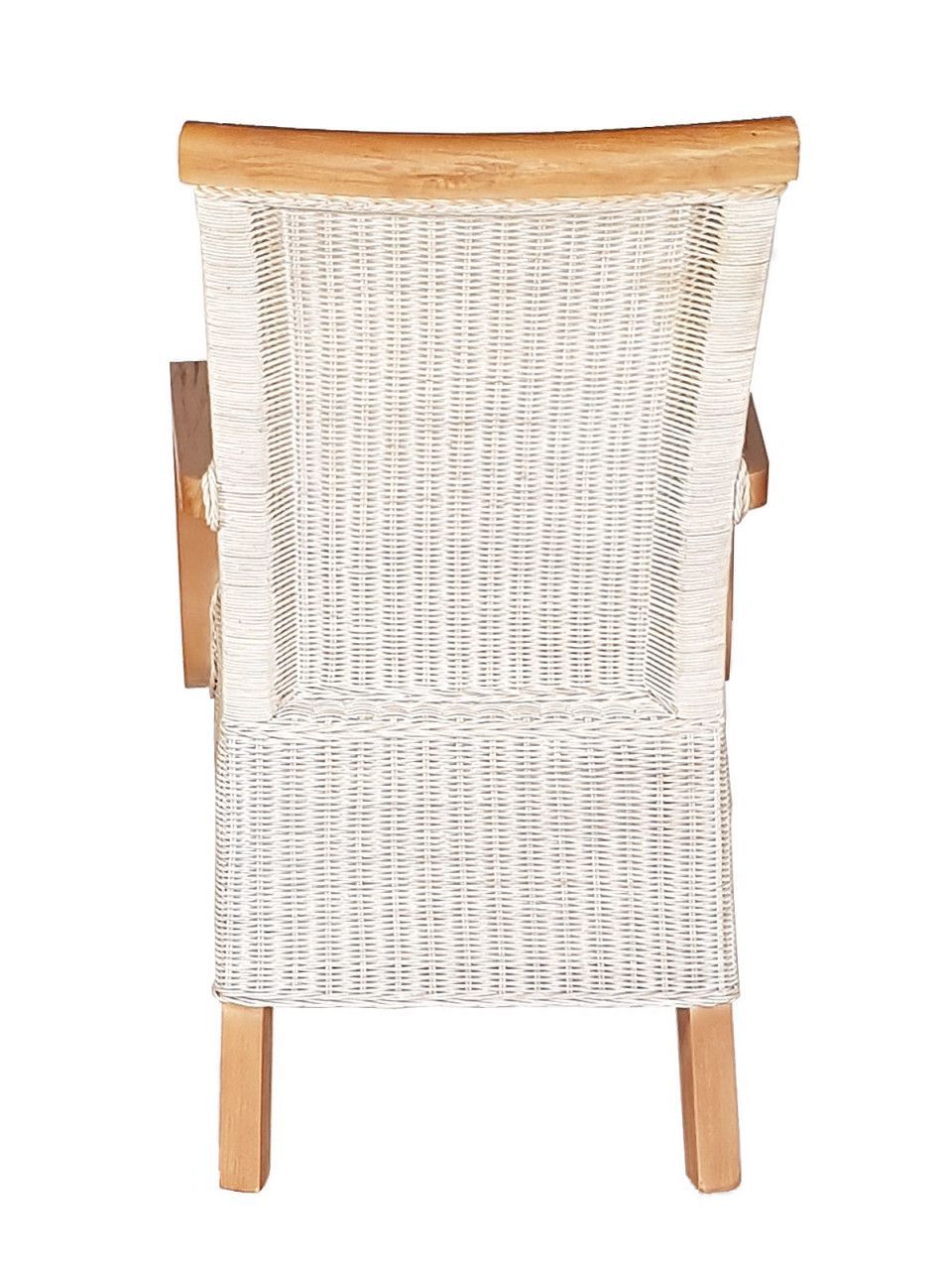 Esszimmer Stuhl mit Armlehnen Rattanstuhl weiß Perth Korbstuhl Rattan Sessel