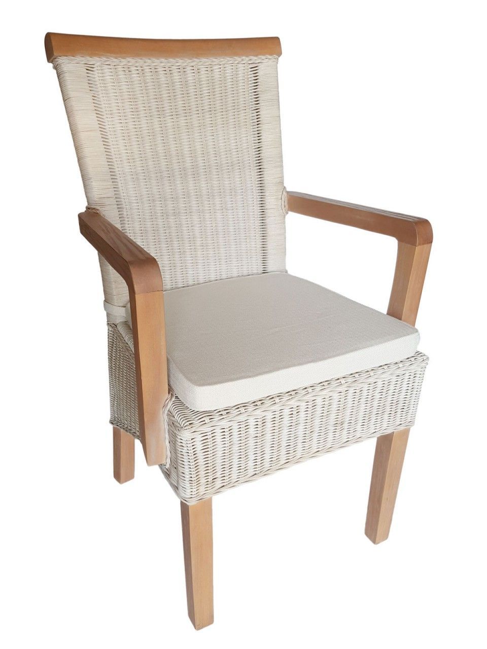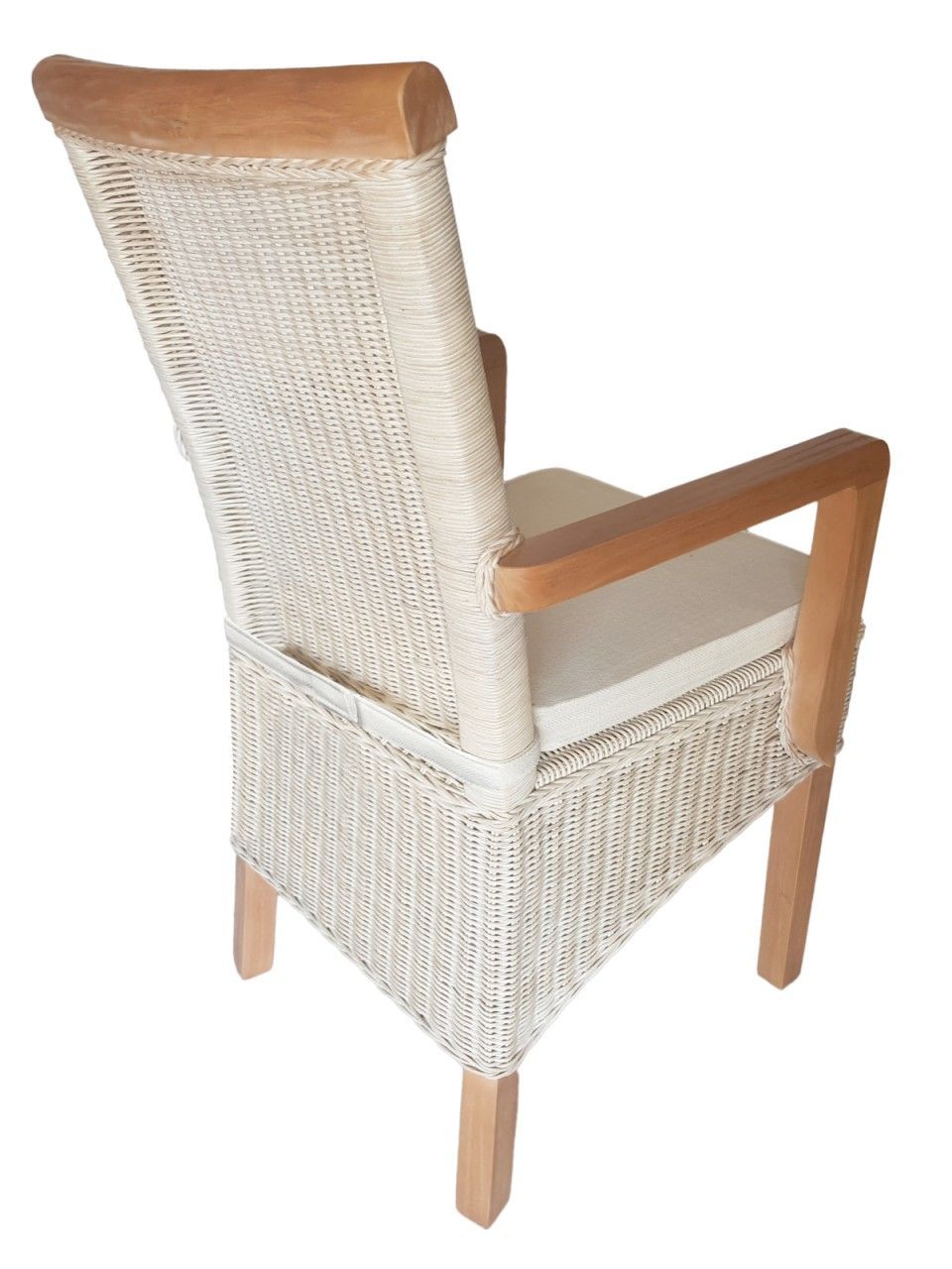 Esszimmer Stuhl mit Armlehnen Rattanstuhl weiß Perth Korbstuhl Rattan Sessel nachh