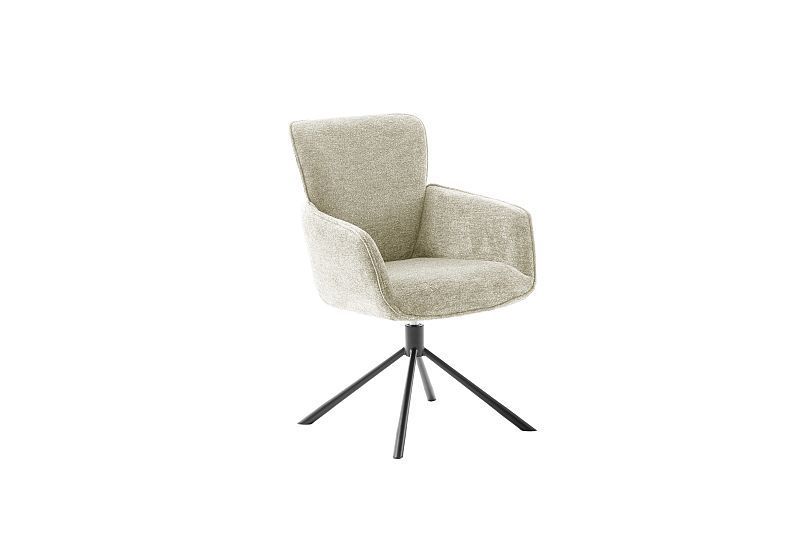 Esszimmerstühle Stühle AMBER 4 Fuß schwarz mit Armehnen Strukturgewebe creme