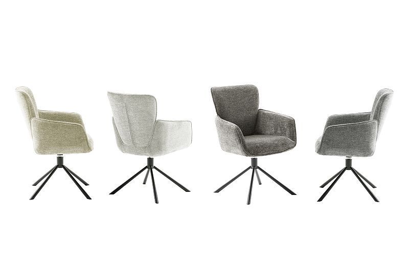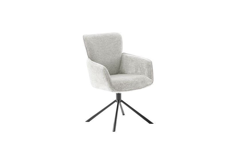 Esszimmerstühle Stühle AMBER 4 Fuß schwarz mit Armehnen Strukturgewebe hellgrau