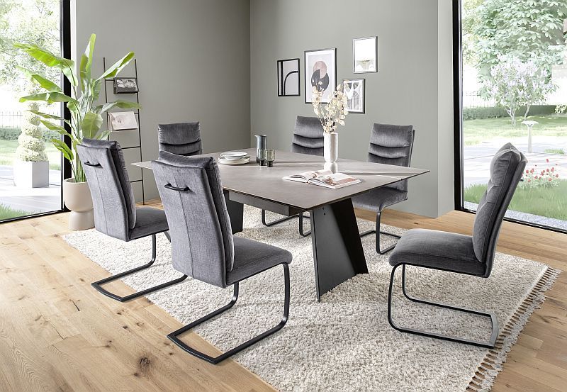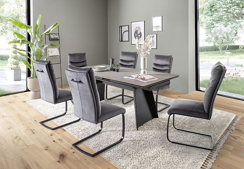 Esszimmerstühle Stühle GIBARA Schwinger schwarz Vintage Velouroptik anthrazit