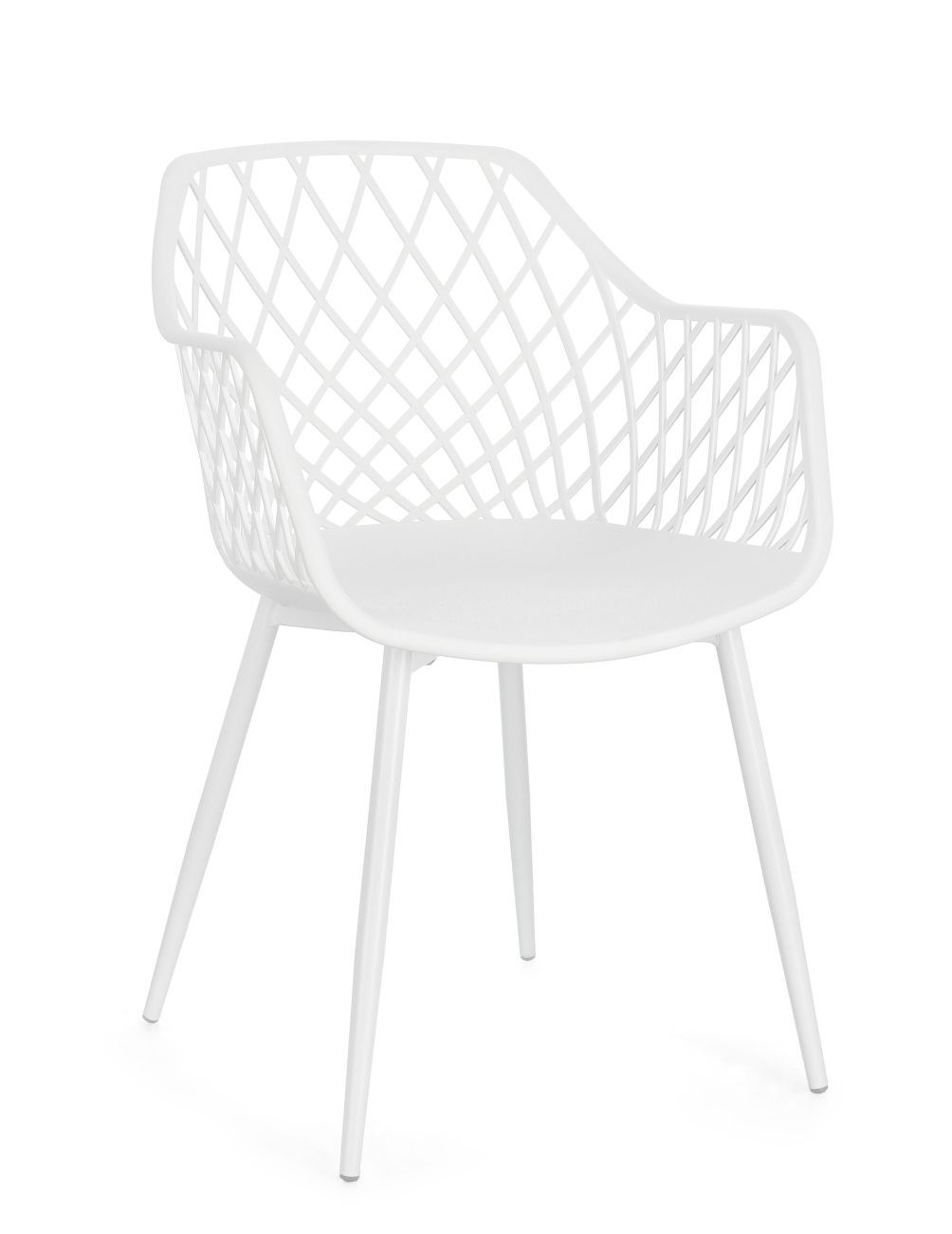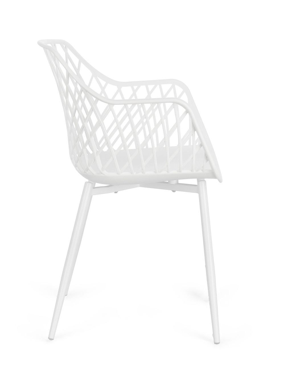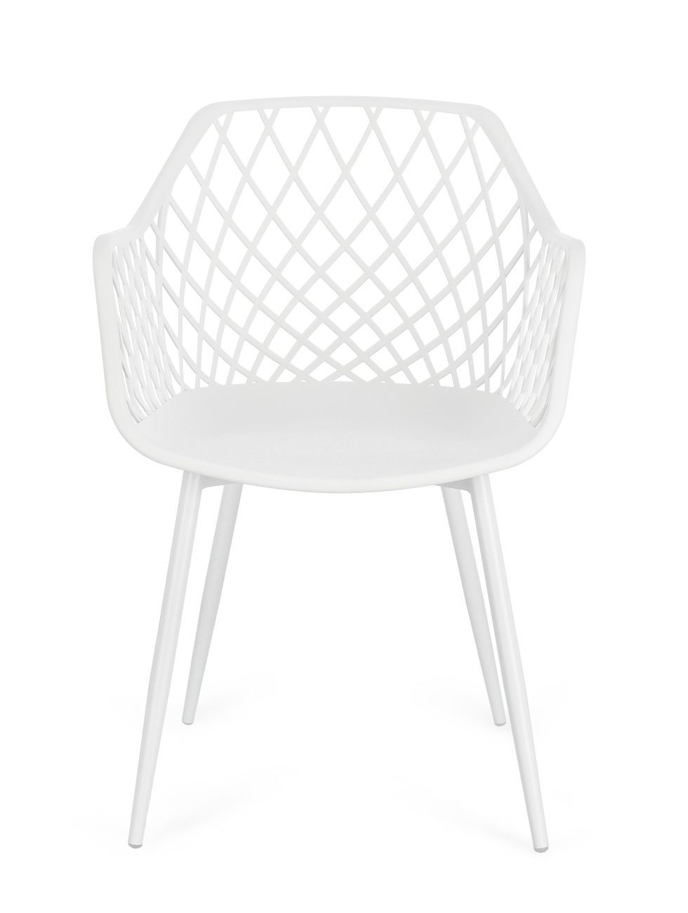 Esszimmerstuhl 4er-Set aus Kunststoff, modernes Design, Weiß, Metallgestell,