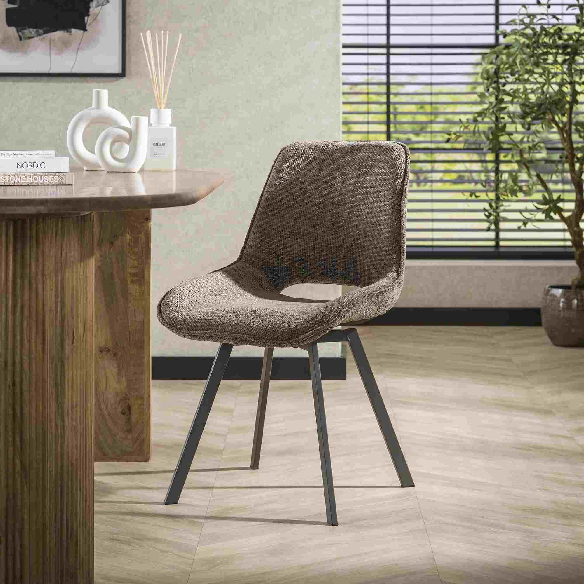 Esszimmerstuhl 4er-Set Tuville Webstoff, modern drehbar, Taupe, weiche