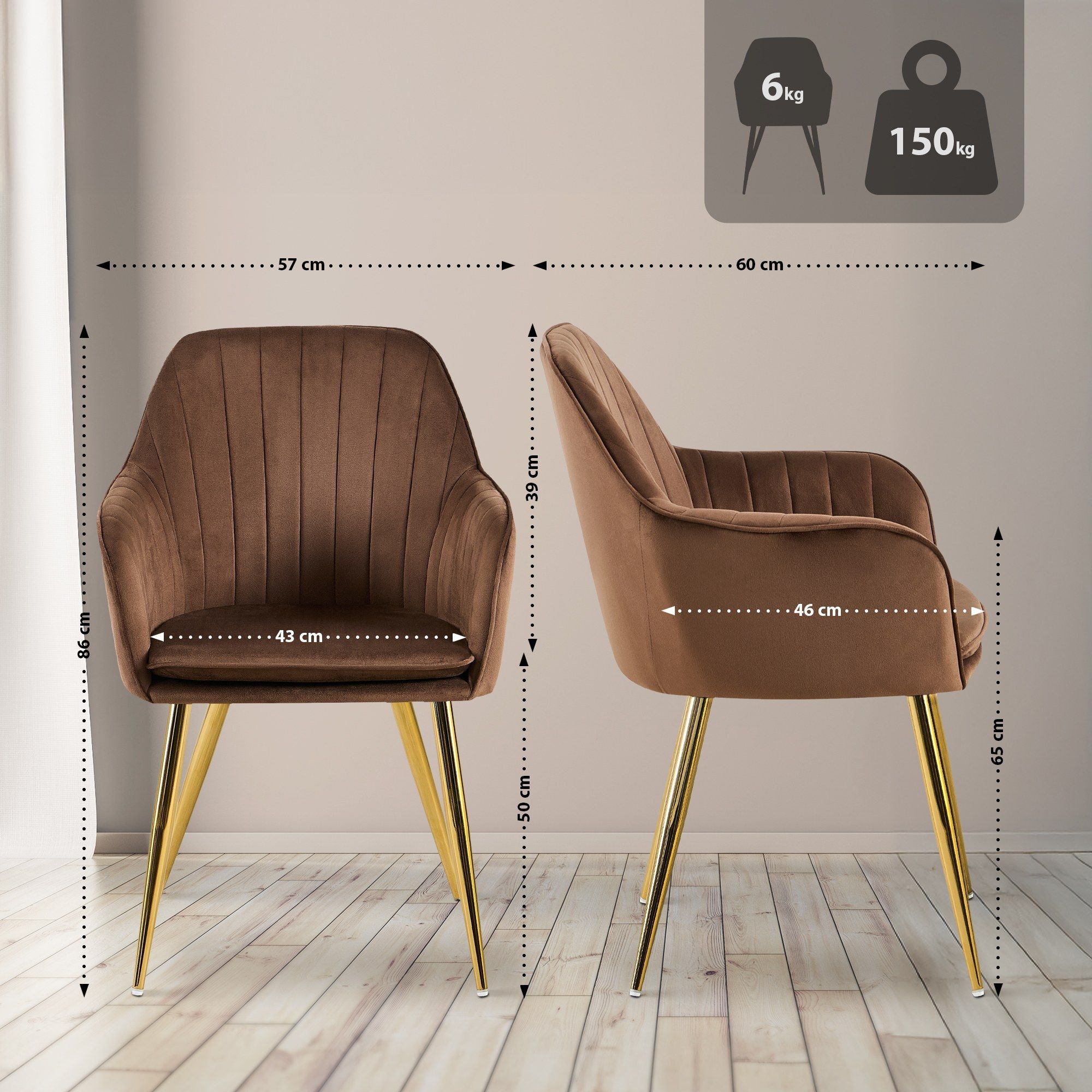 Esszimmerstuhl Cheryl Samt gold, braun