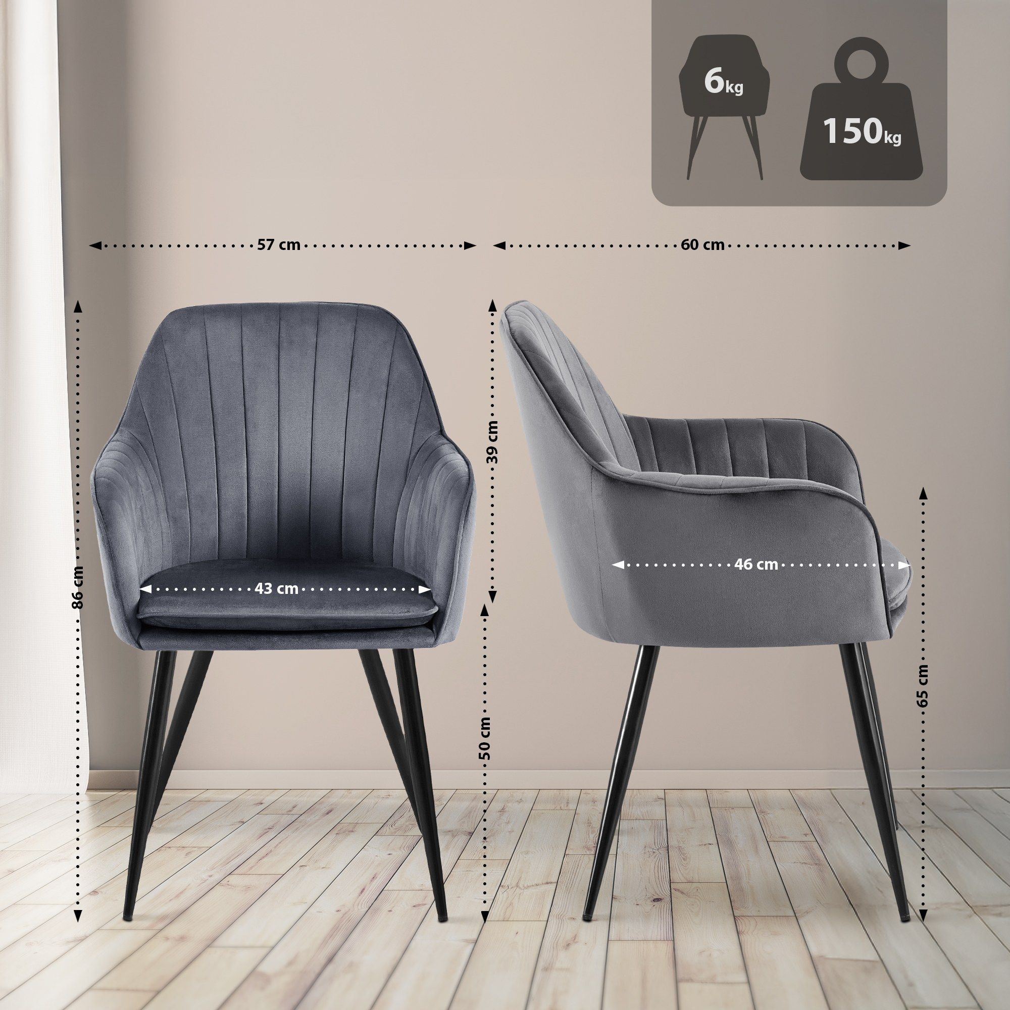 Esszimmerstuhl Cheryl Samt schwarz, dunkelgrau