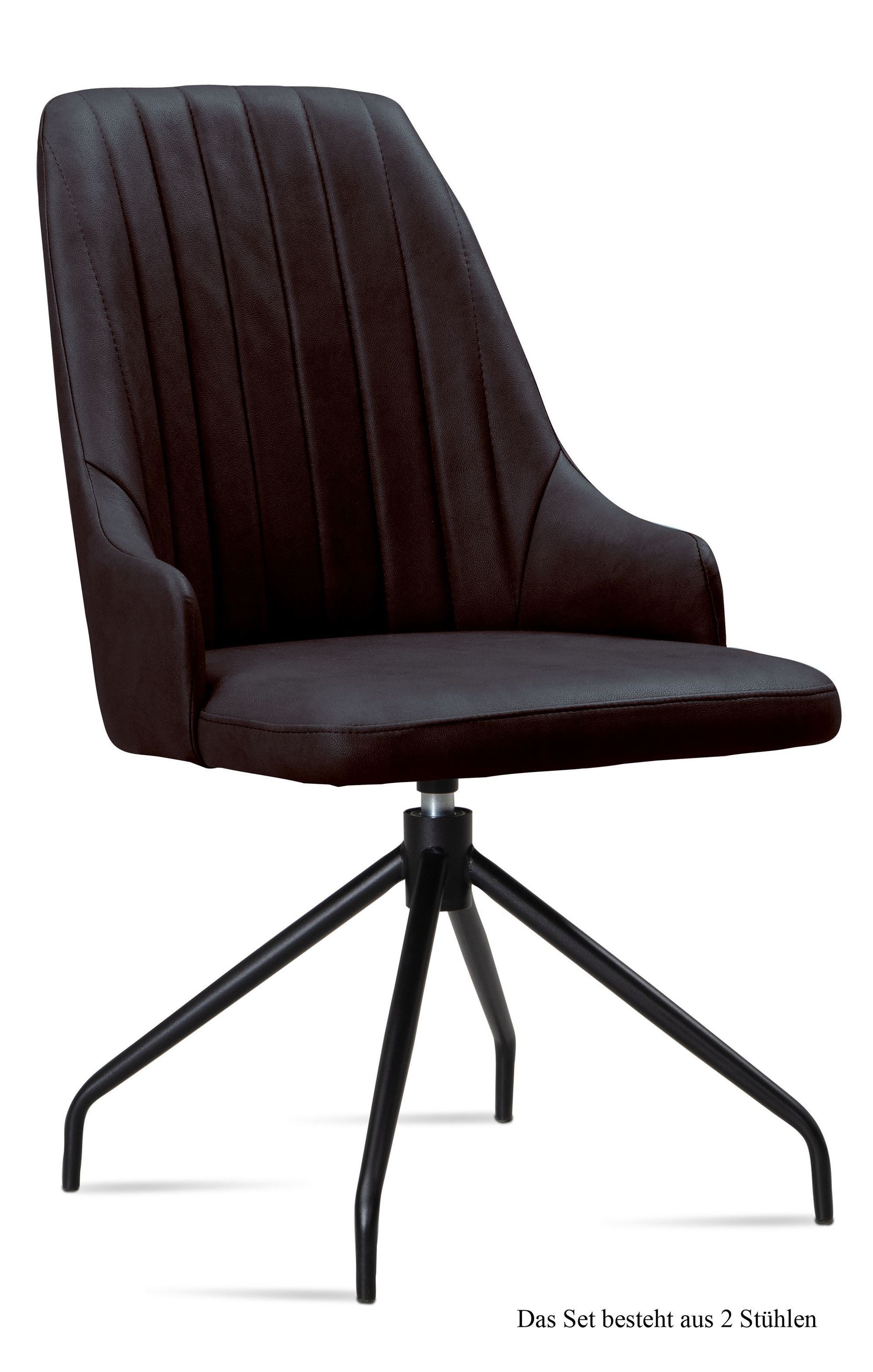 Esszimmerstuhl drehbar (2er-Set) Doreen 52x91x60 Schwarz/Natur