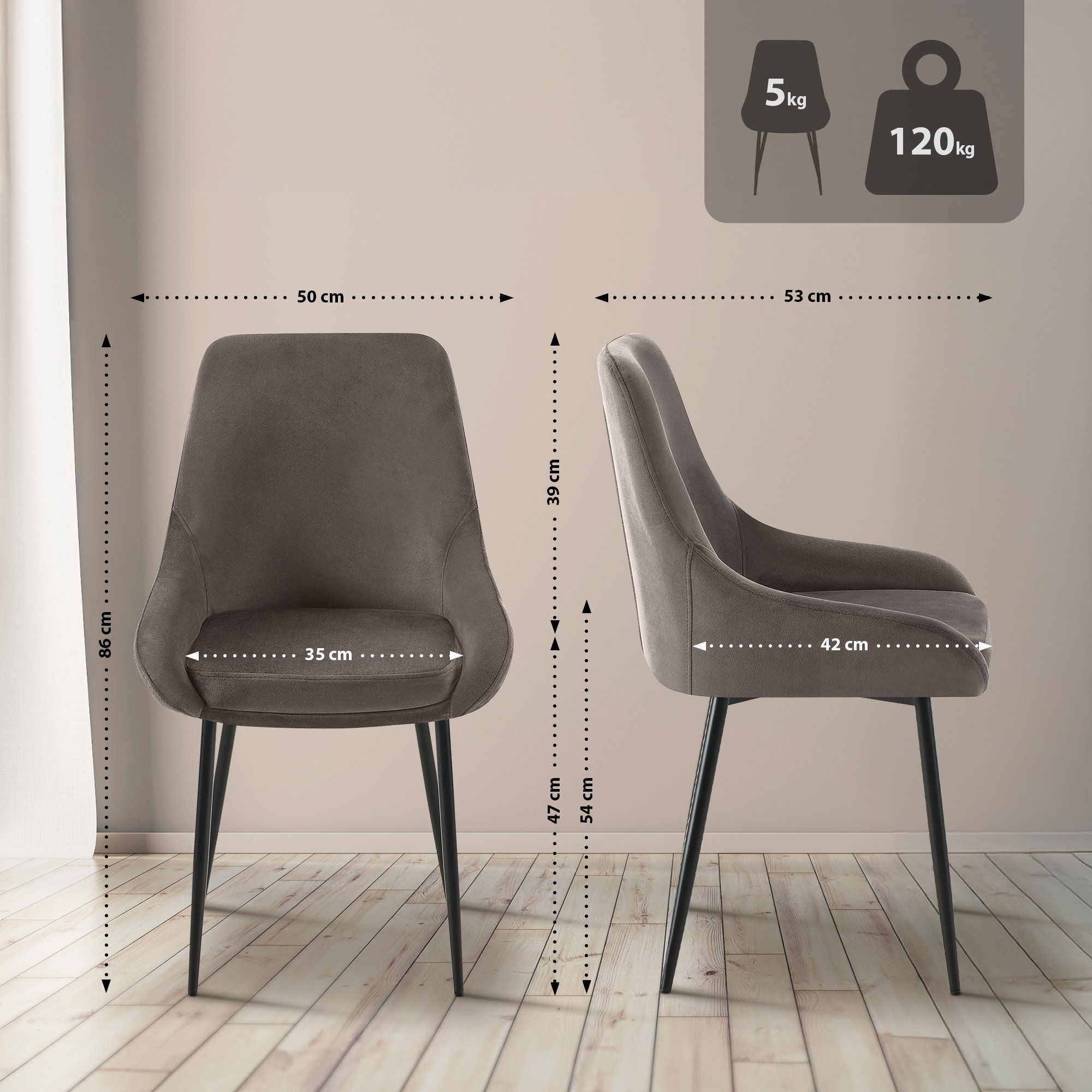 Esszimmerstuhl Elmira Samt schwarz, anthrazit