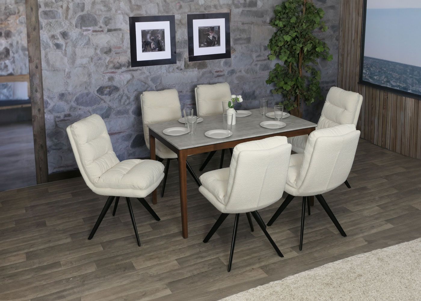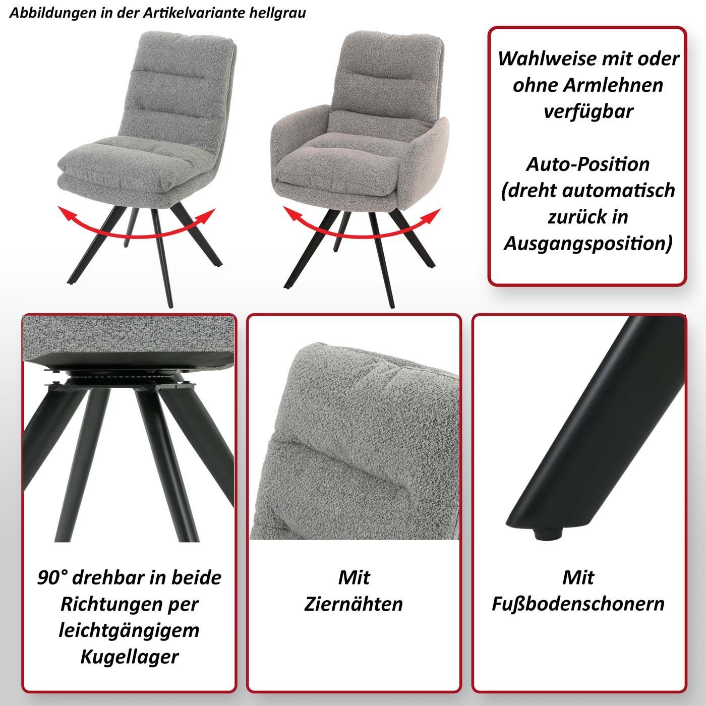 Mendler Esszimmerstuhl HWC-G66, Küchenstuhl, drehbar Auto-Position Stoff/Textil Bouclé MVG