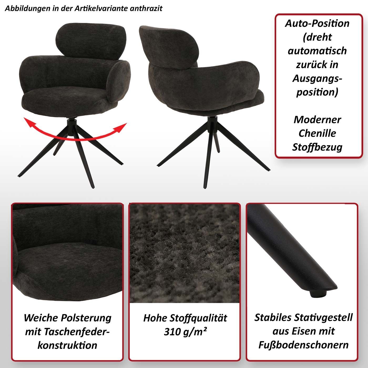 Mendler Esszimmerstuhl HWC-O77, Stuhl, drehbar Auto-Return, Stoff (310g/m²) Chenille