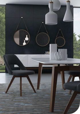 Grauer Luxus Esszimmerstuhl Moderner Einsitzer Stil Designer Holzmöbel