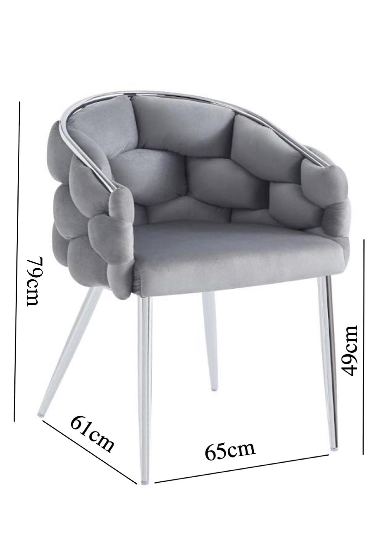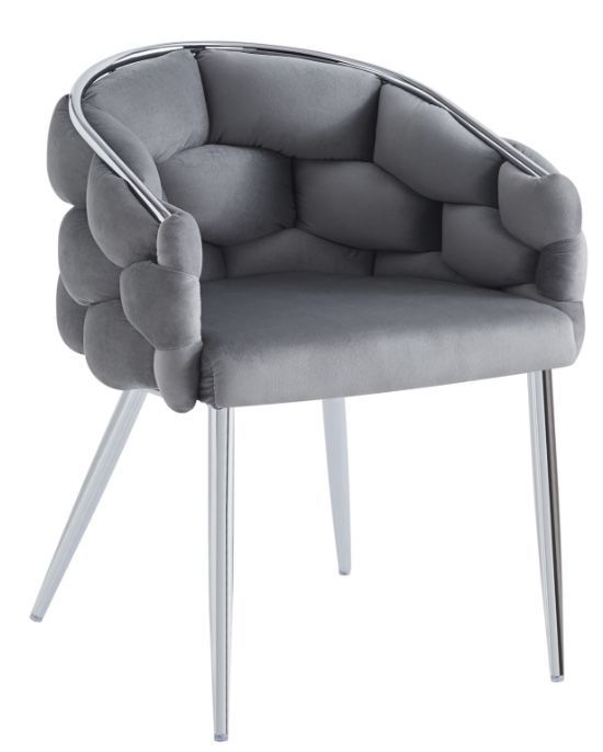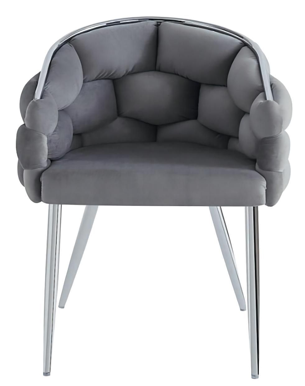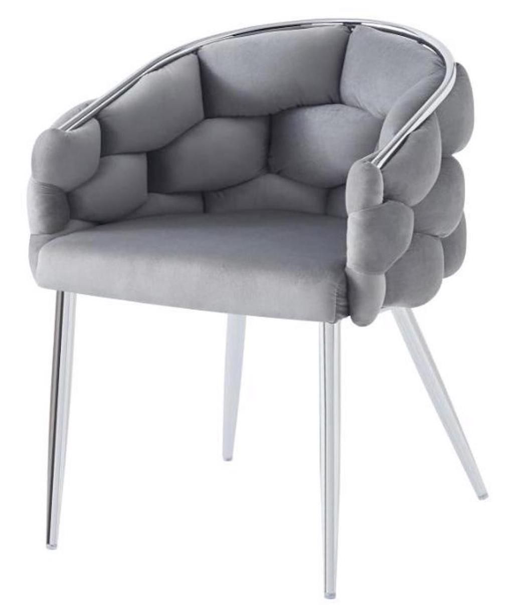 Esszimmerstuhl Polsterstuhl Sessel grau Samtbezug gepolstert 4 Füße Chrom