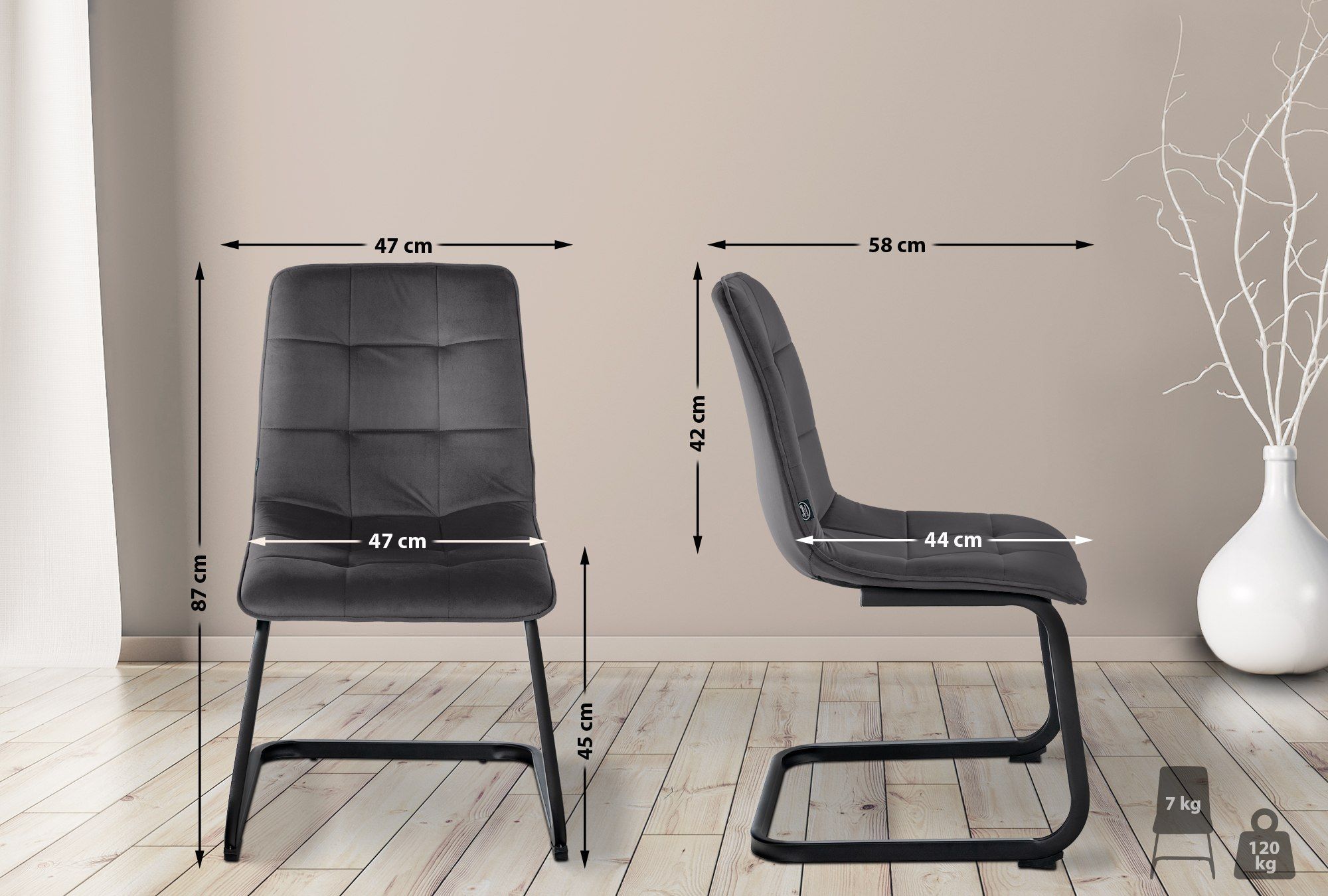 Esszimmerstuhl Vermont Samt, schwarz