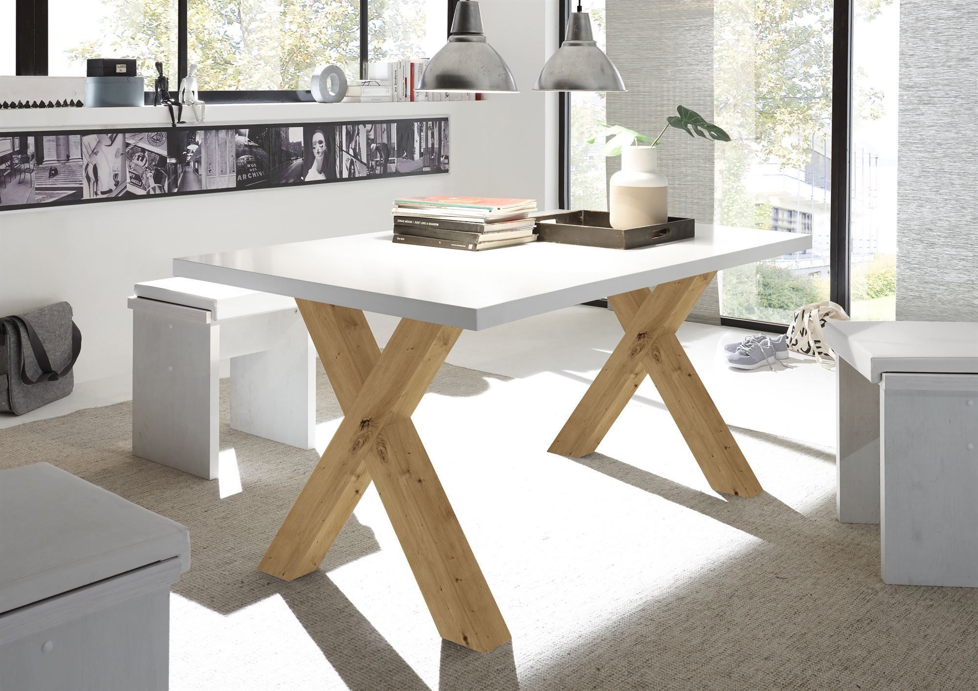 Esszimmertisch Eike 2 140 x 90 x 75 Esstisch Asteiche/Weiß Matt Lack
