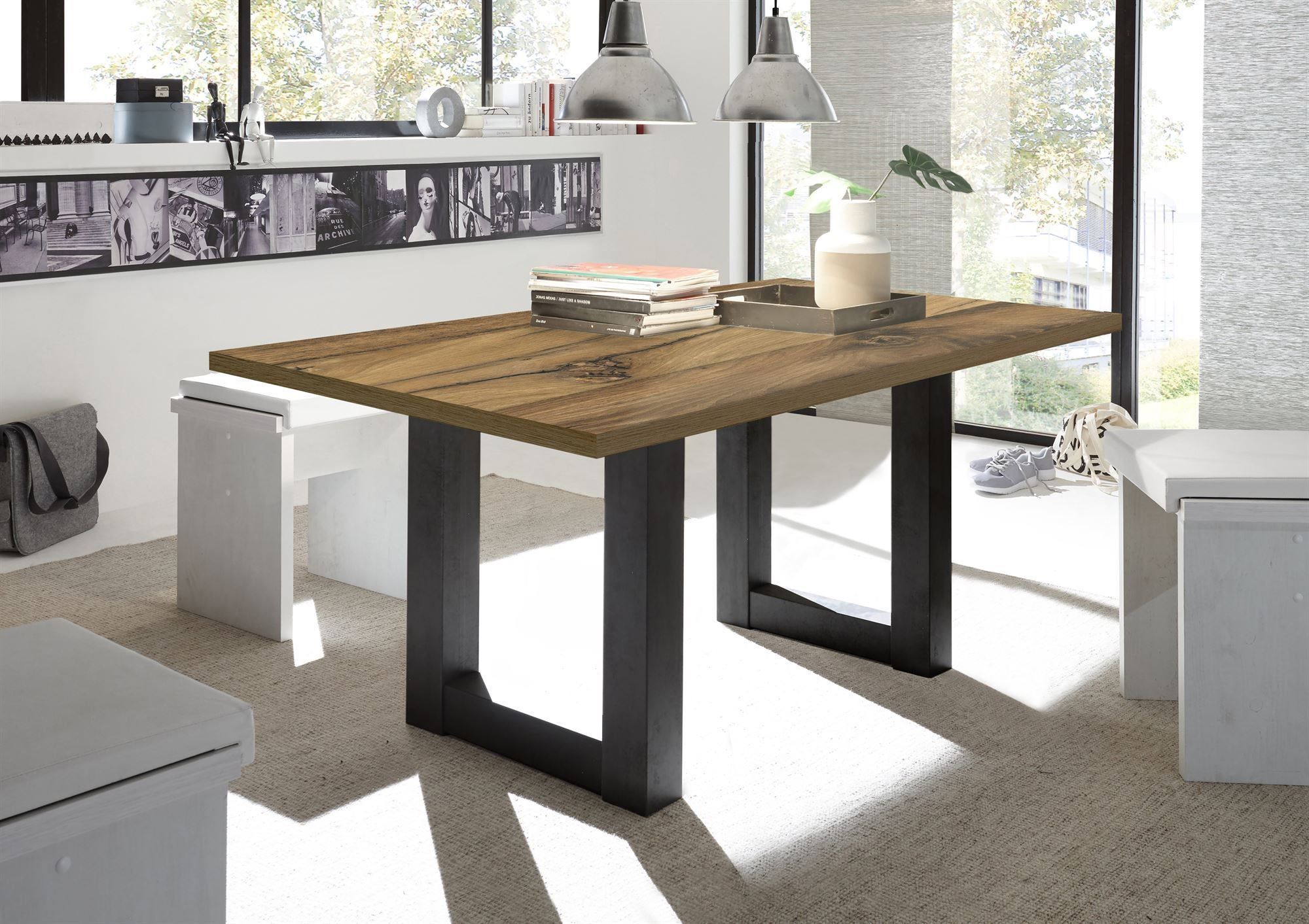Esszimmertisch Eila 8 140 x 90 x 75 Esstisch Schwarzstahl/Plankeneiche