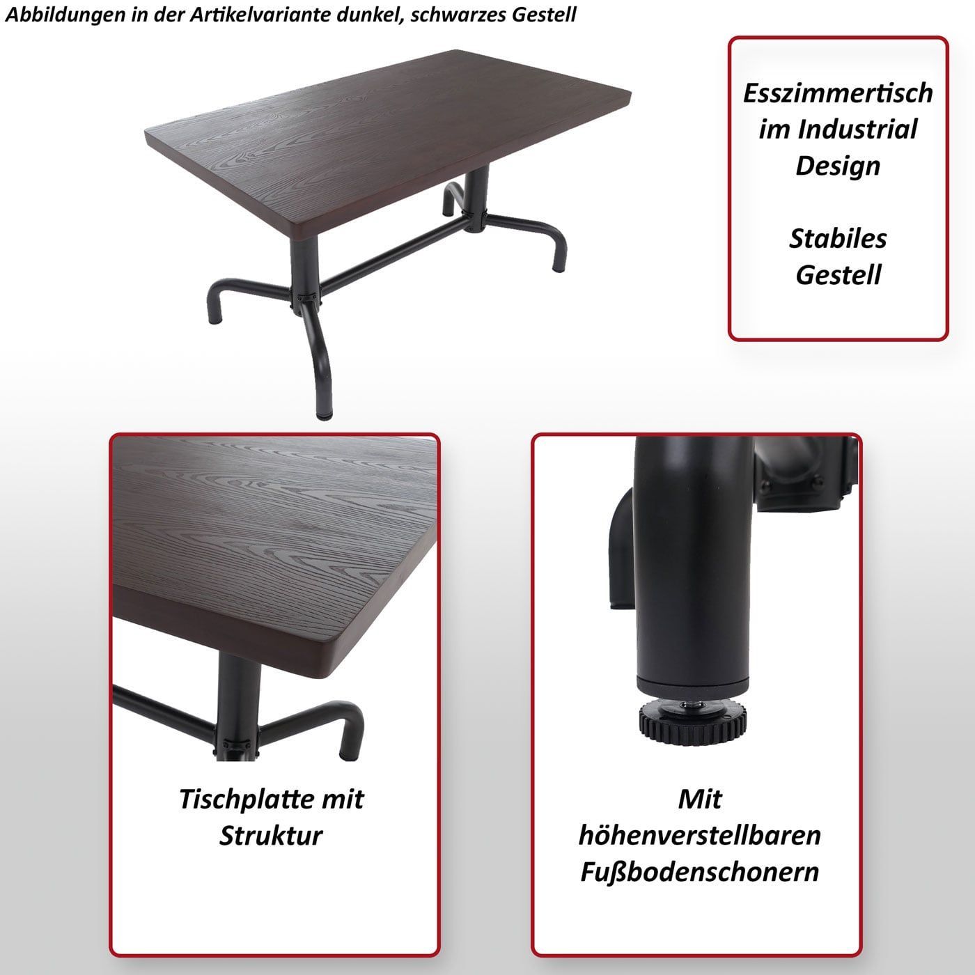 Mendler Esszimmertisch HWC-P31, Tisch Esszimmertisch, Industrial Holz 140x80cm