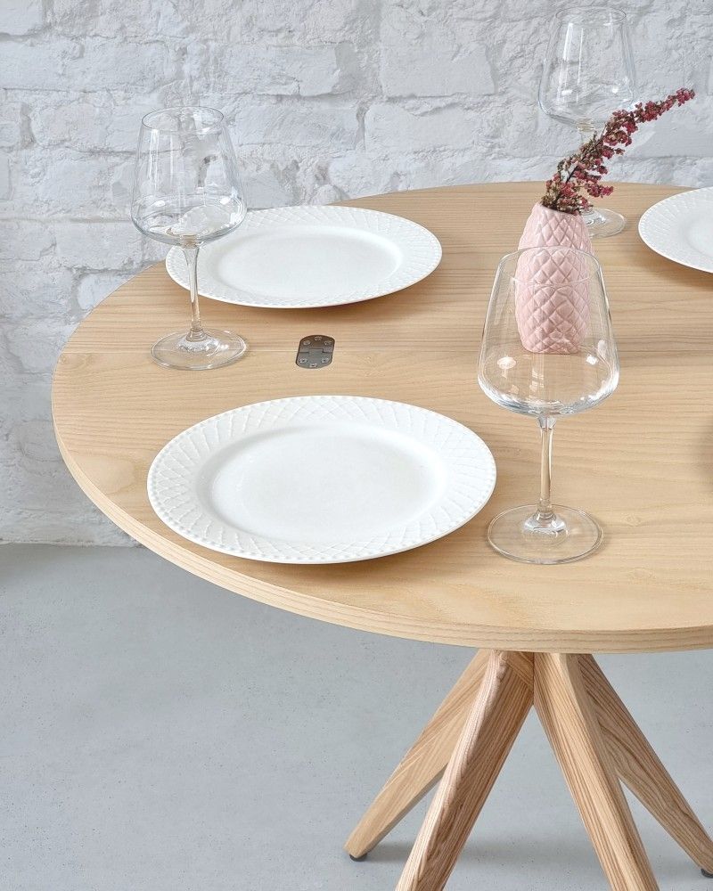 Dieser praktische Esstisch in der Farbe Esche der Firma Ragaba ist ausklappbar und daher besonders platzsparend.