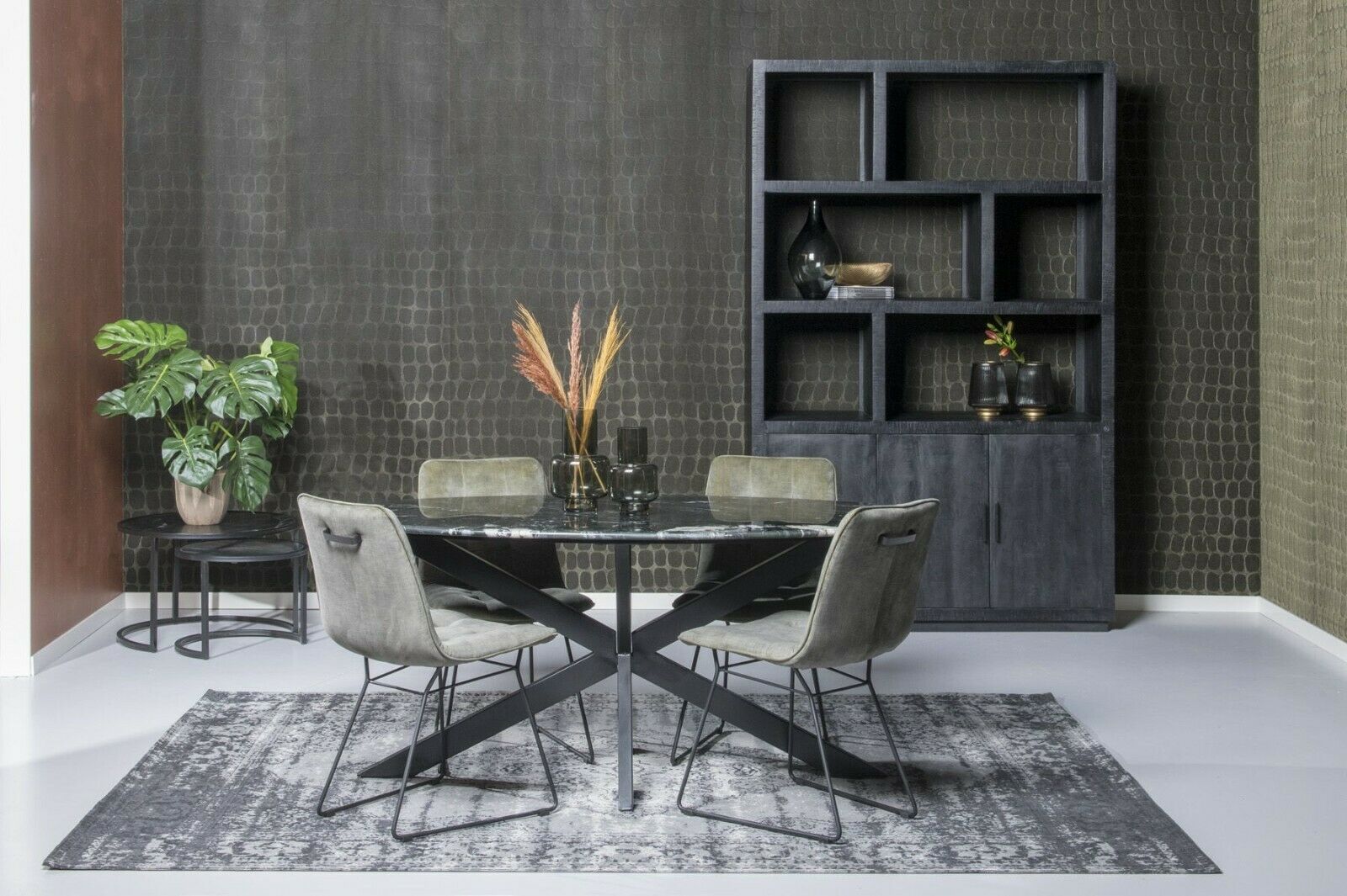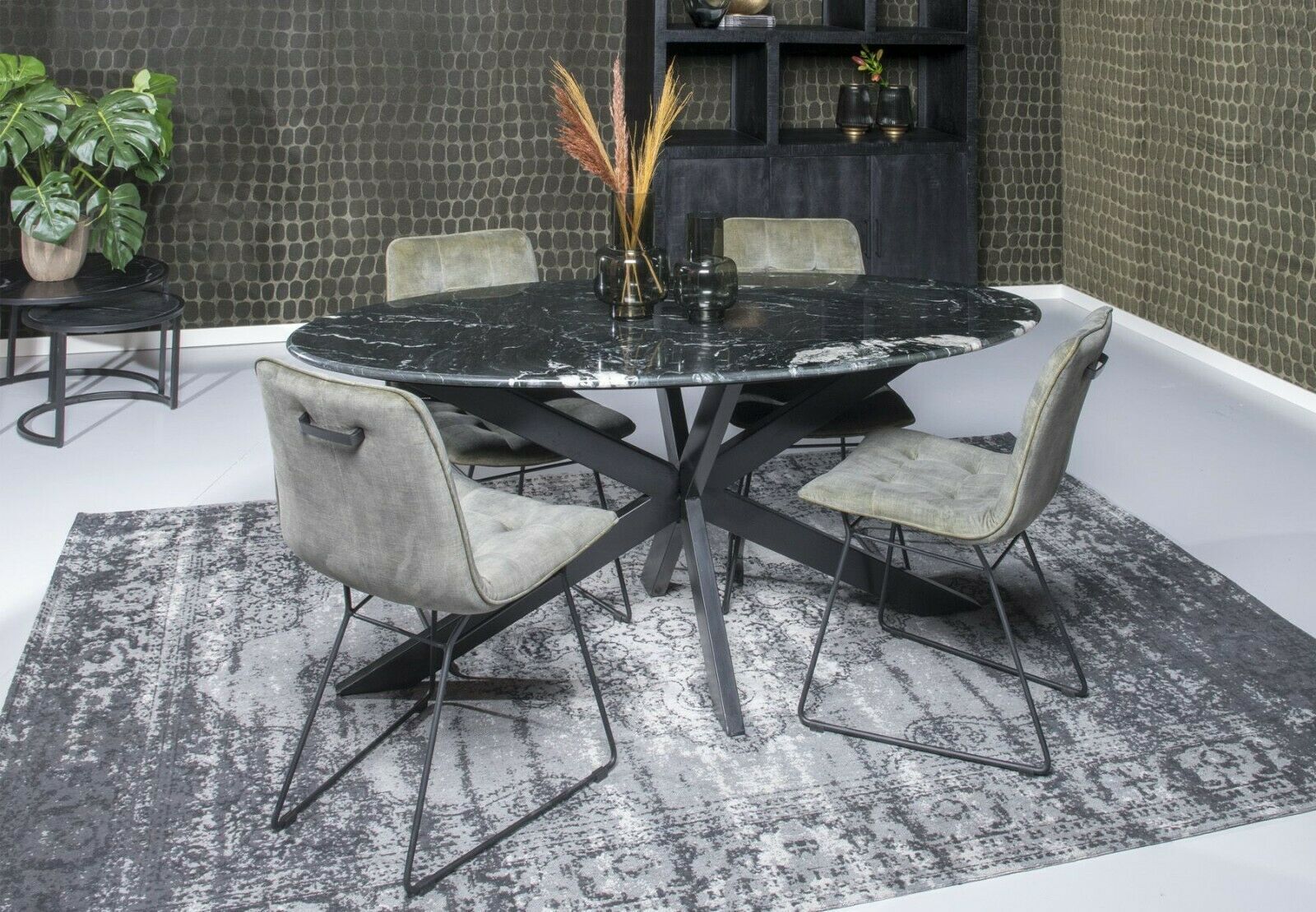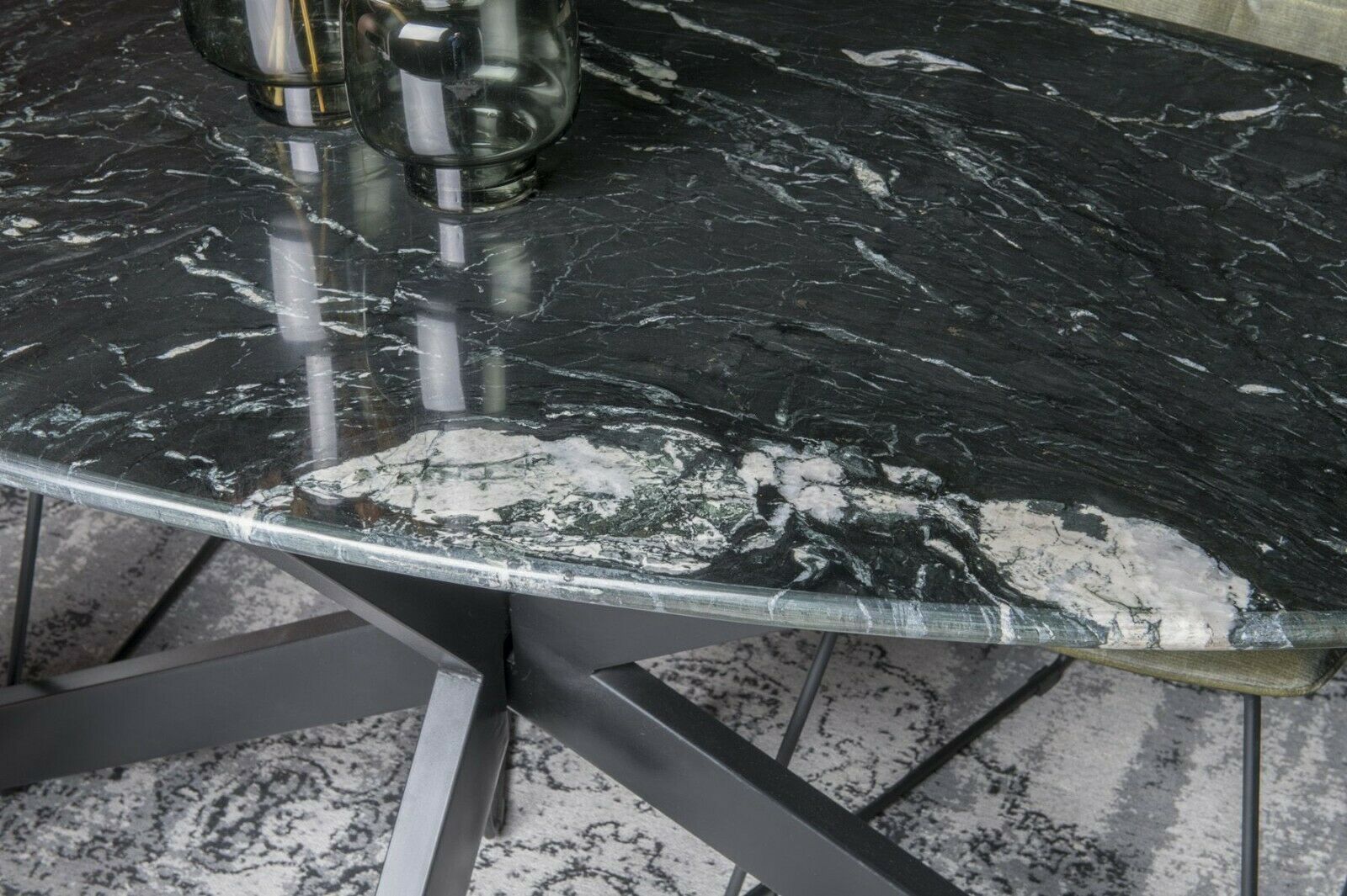 Esszimmertisch Küchentisch Tisch Marble Spider Stahl Marmor schwarz Oval 180 cm