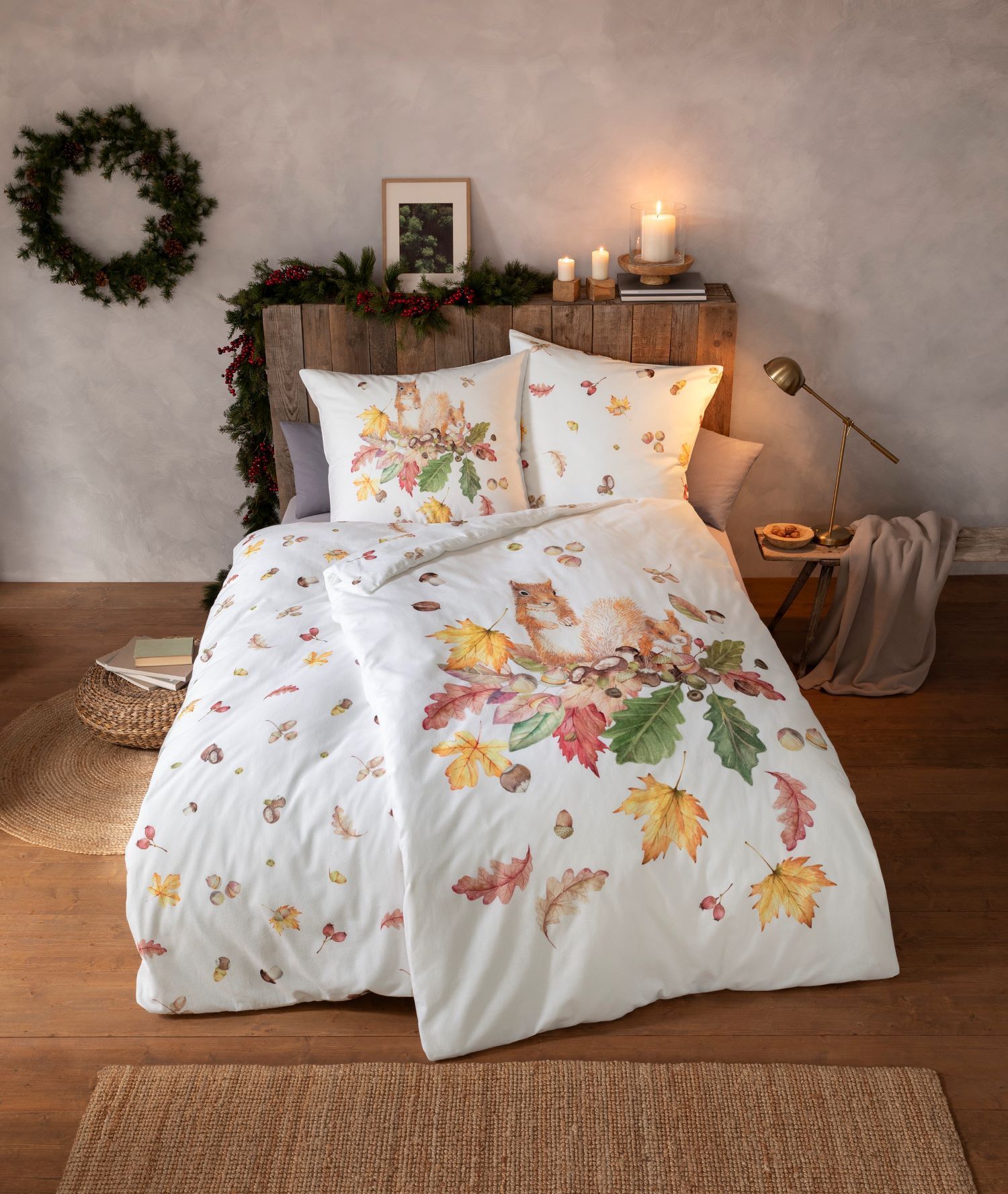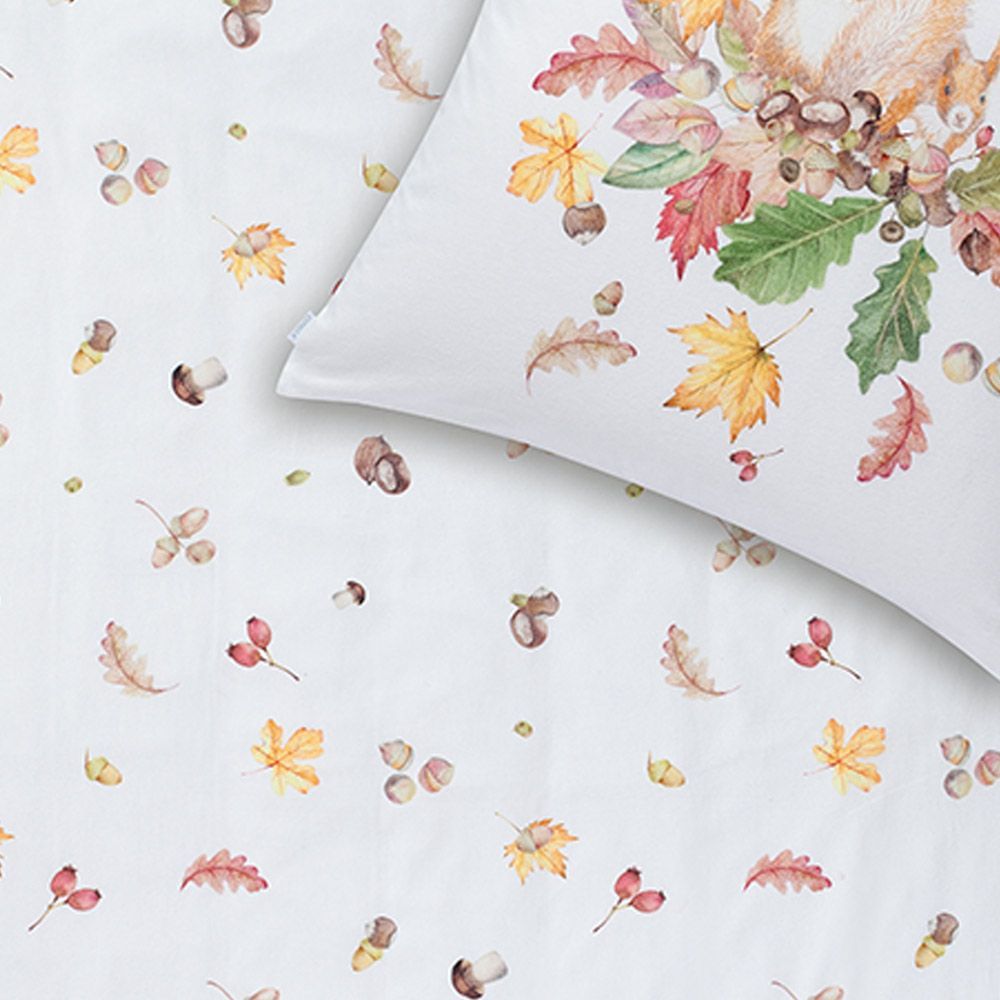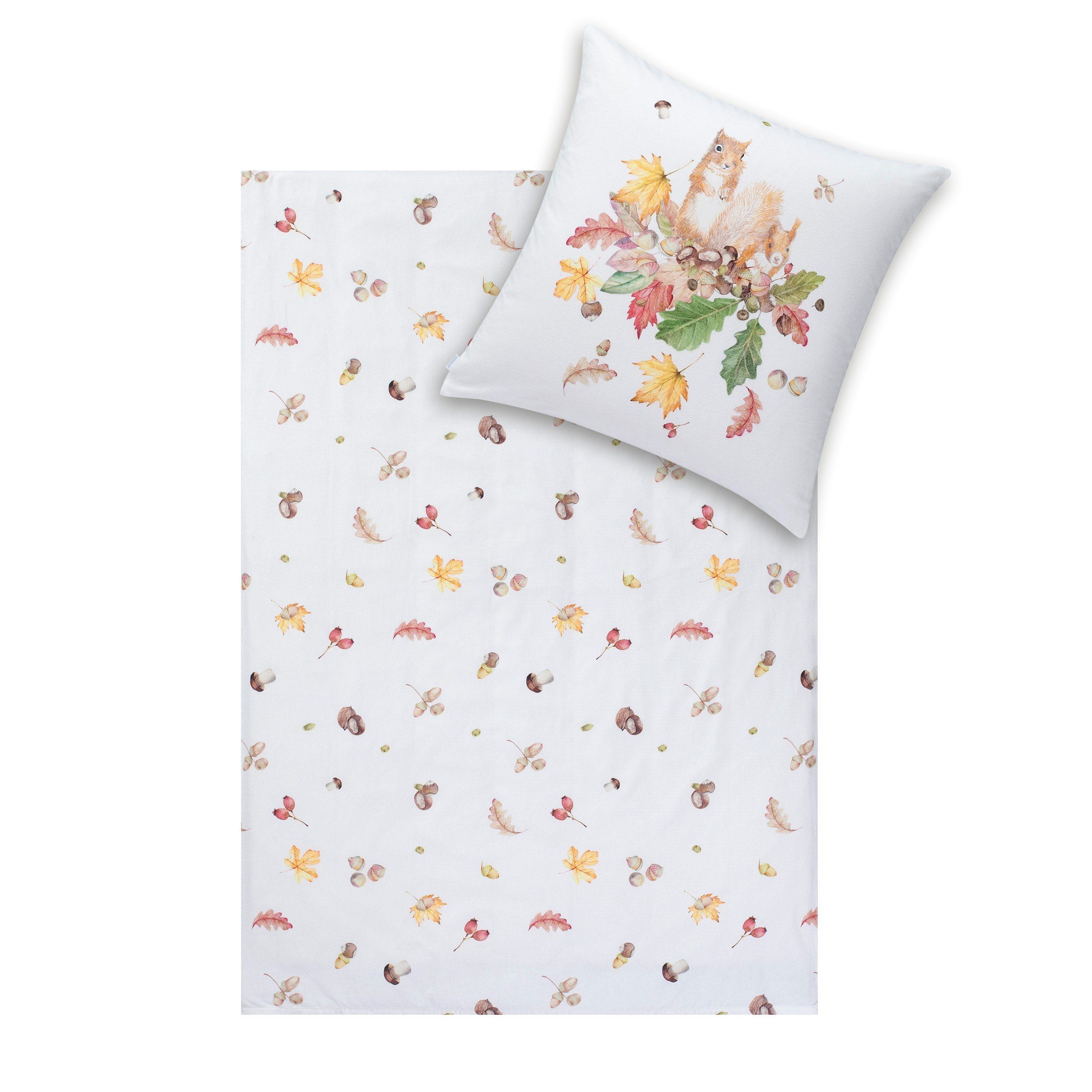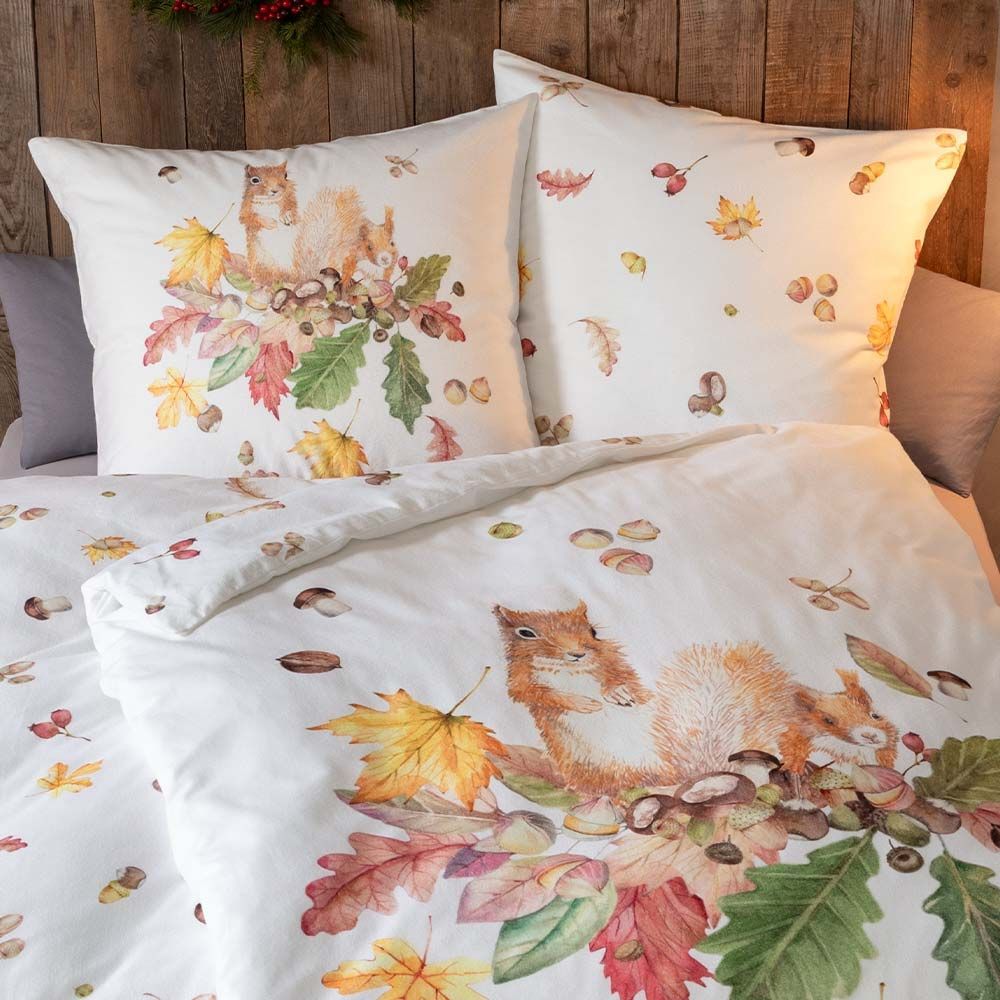 Estella Estella Kuschel Flanell Bettwäsche 135x200 Squirrel natur Eichhörnchen Blätter