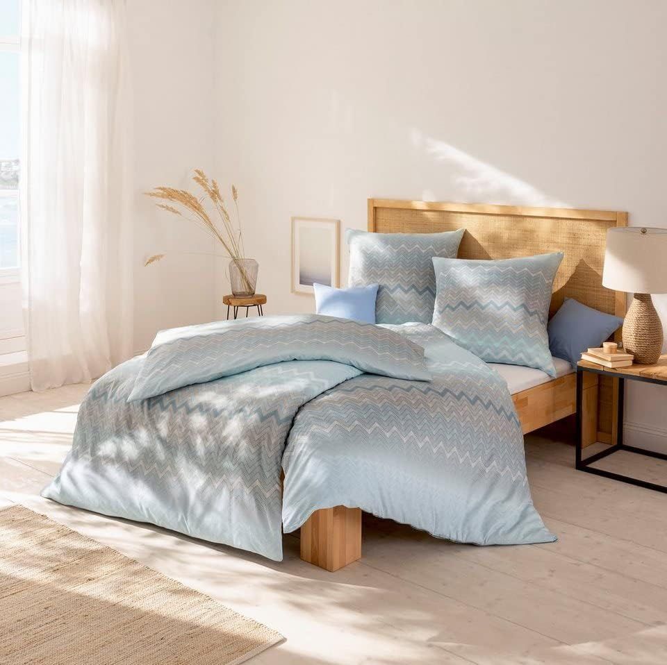 Estella Mako-Batist Bettwäsche 135x200 Nikita aquamarin Zickzack 2259-140
