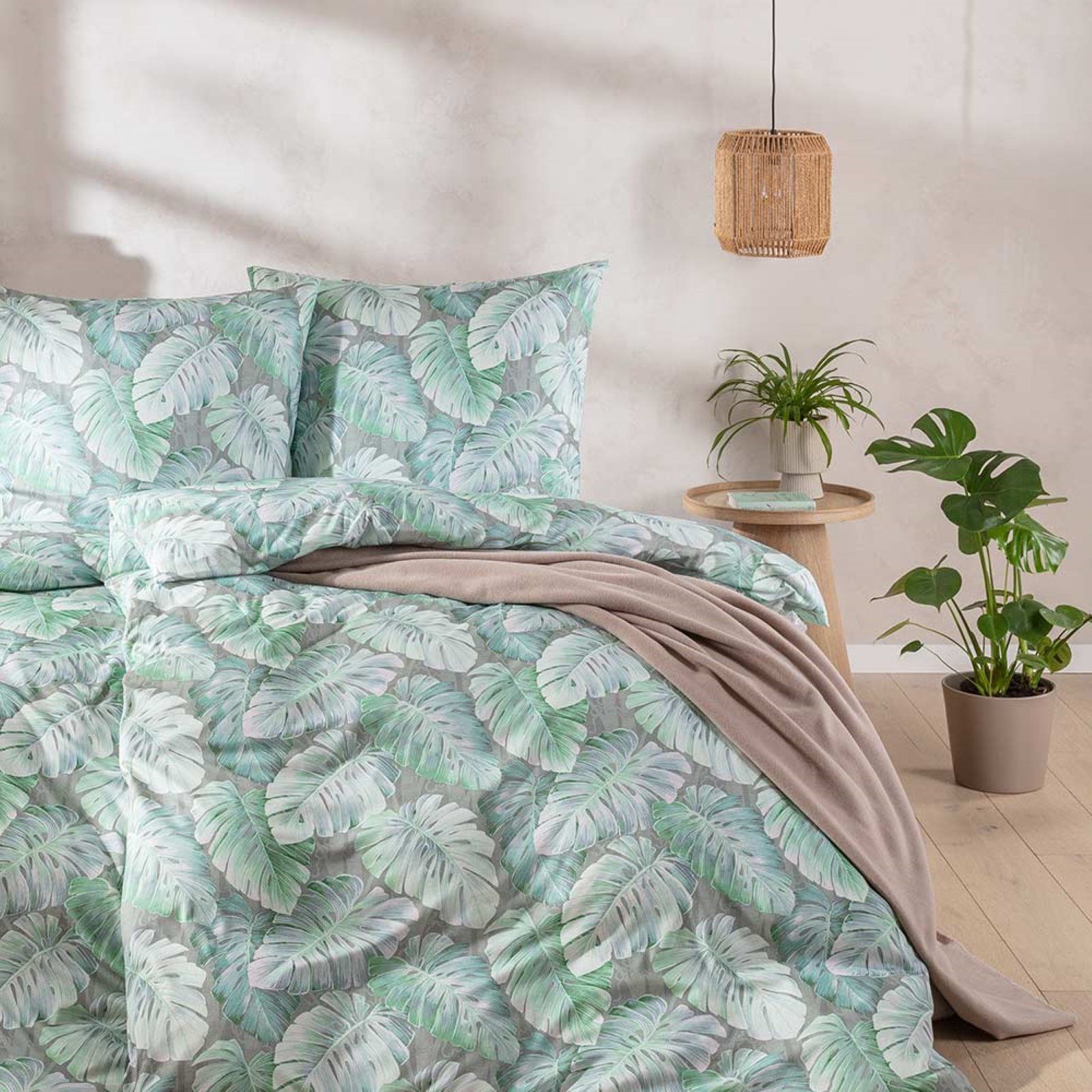 Estella Mako Jersey Bettwäsche 135x200 Rabea alge Blätter Monstera grün 6301-545