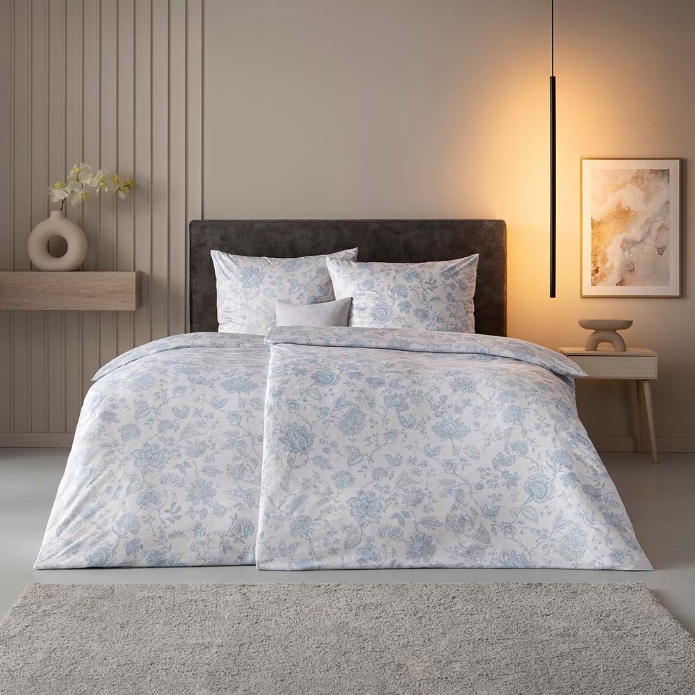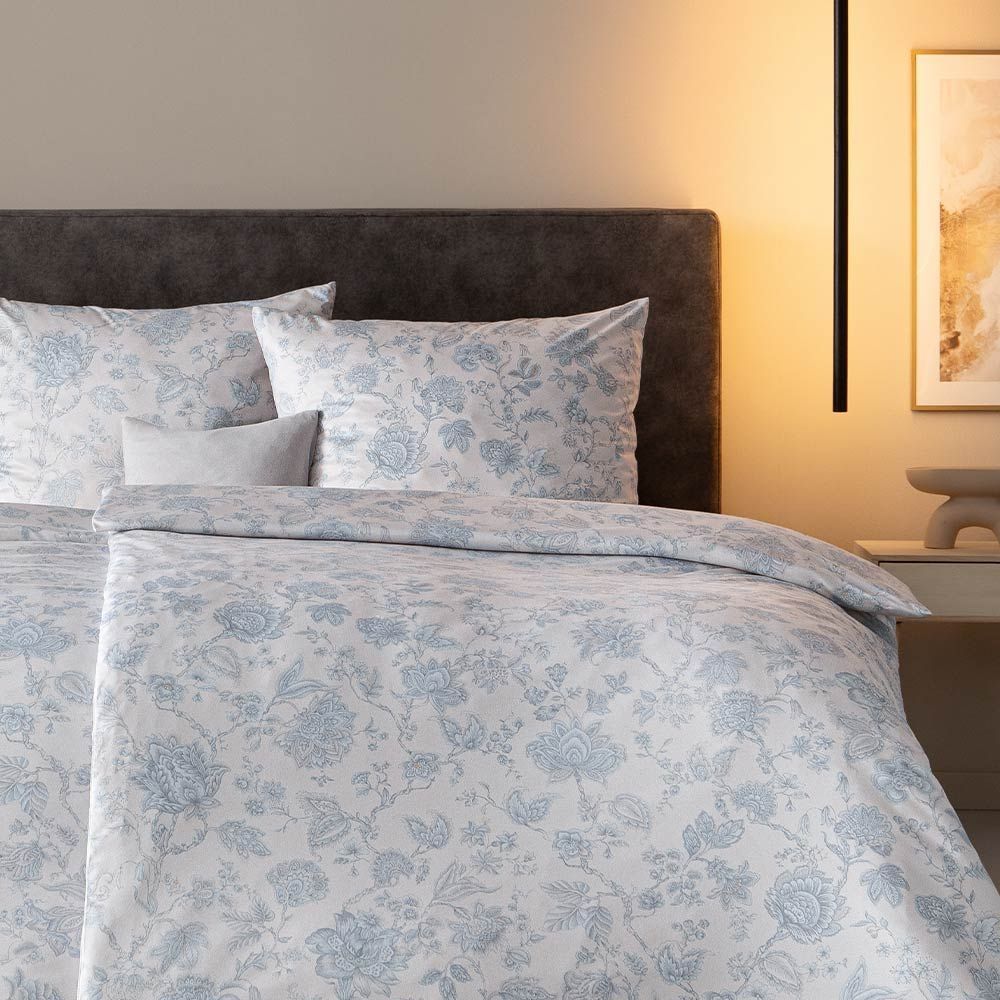Estella Estella Mako Jersey Bettwäsche 135x200 Valeria taupe Blumen silber bleu 6343-295