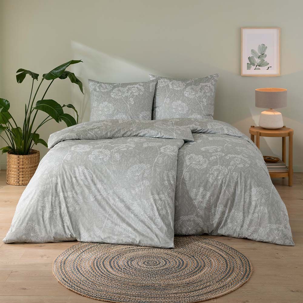 Estella Mako Jersey Bettwäsche 155x220 Anja khaki Gräser Blütendolden 6345-016