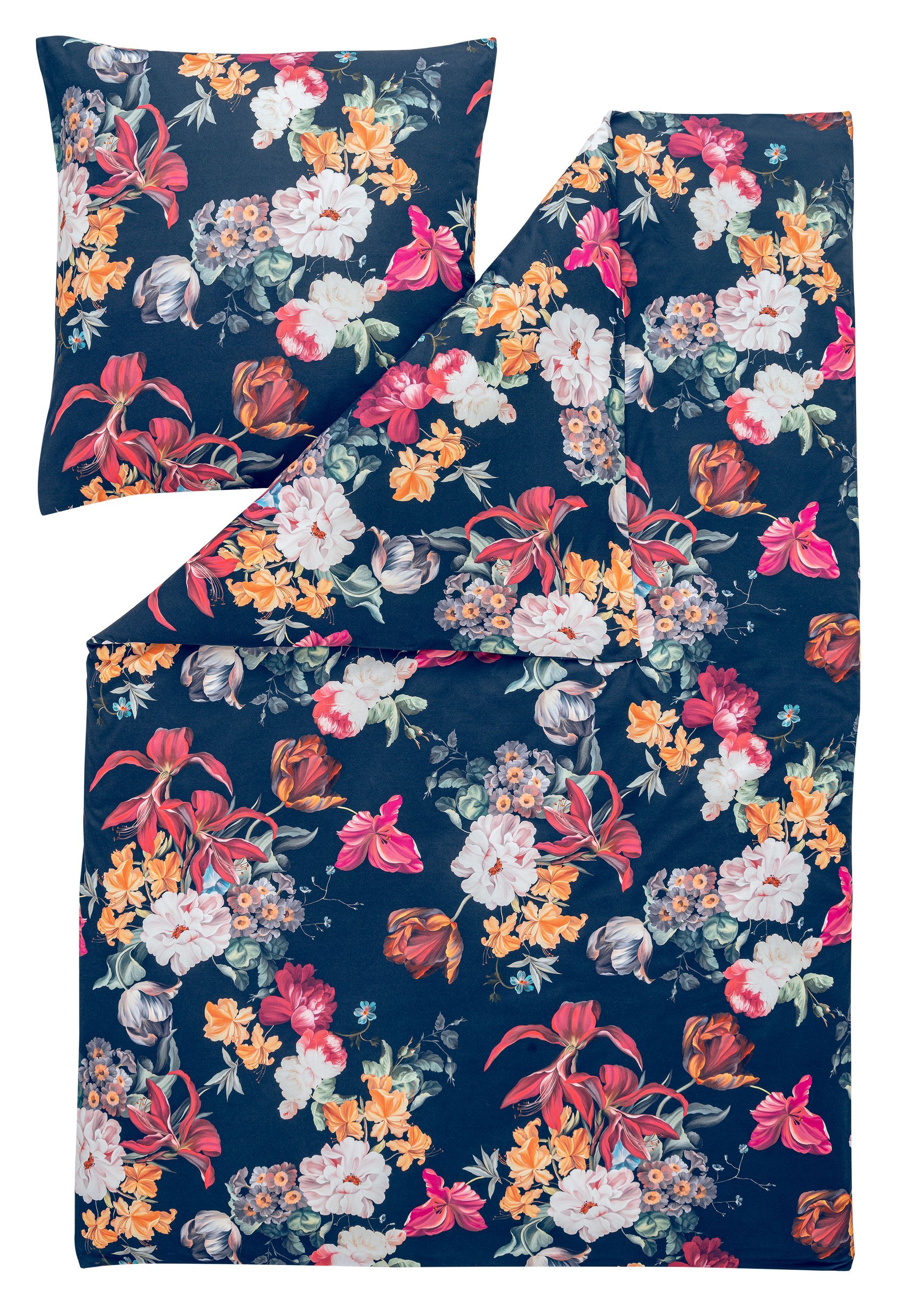 Estella Estella Mako Jersey Bettwäsche DD 155x220 Oxana nachtblau Blütenmeer 6961-625