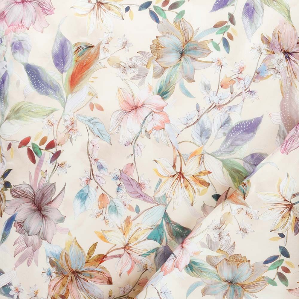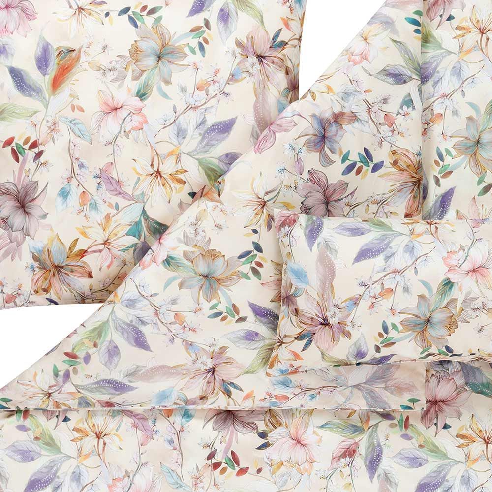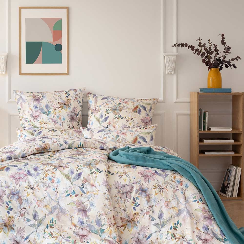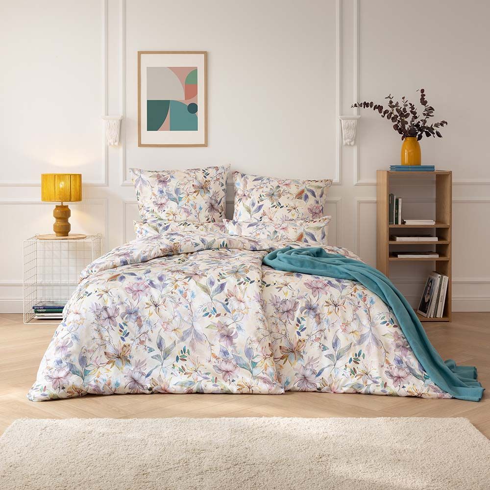 Estella Mako-Satin Bettwäsche 135x200 Estera Blüten Lilien beige rosa 7960-985