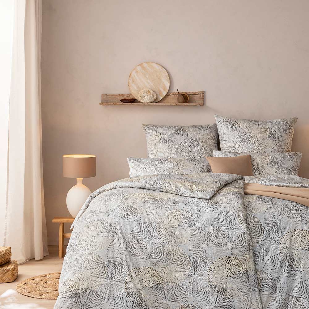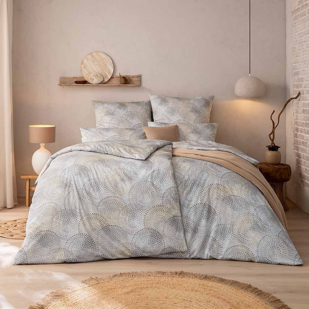 Estella Mako-Satin Bettwäsche 135x200 Orion grau Kreise Mandala silber 7969-810