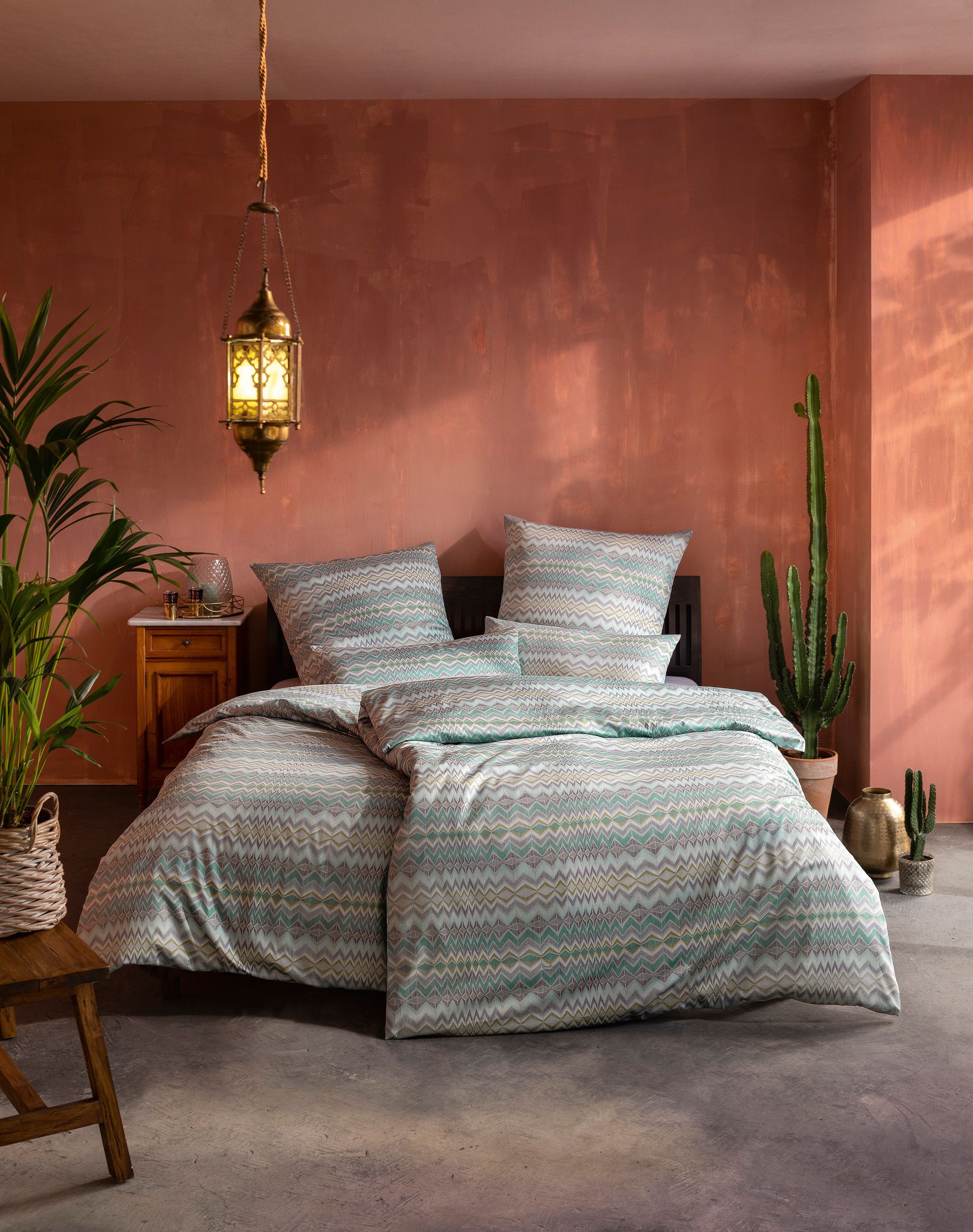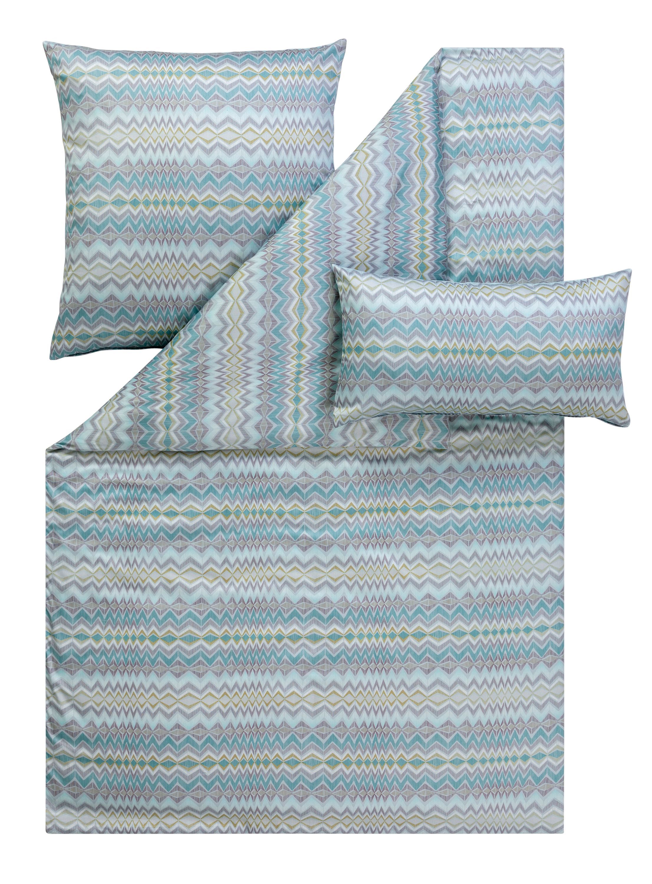 Estella Estella Mako-Satin Bettwäsche 155x220 Nuria mint grau Zickzack 7902-520