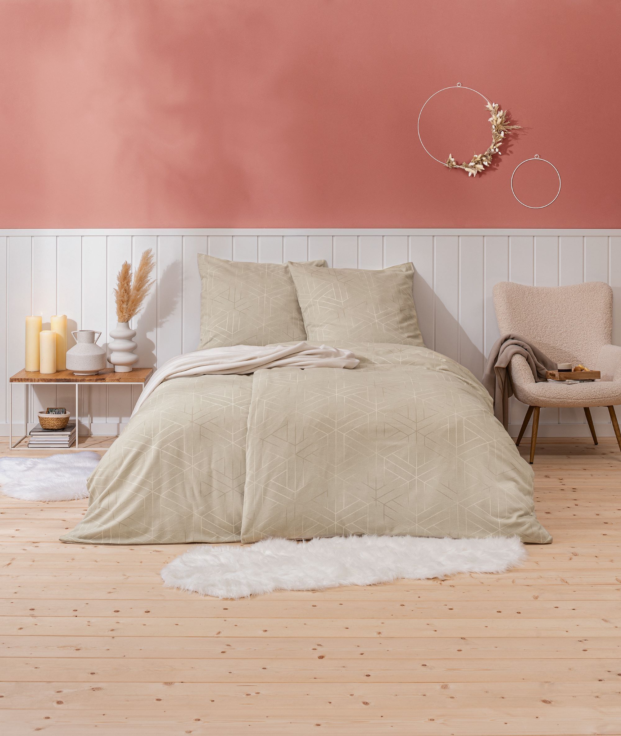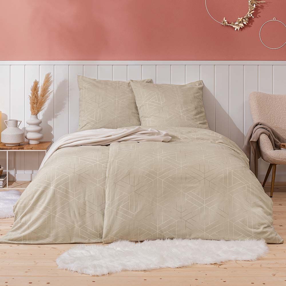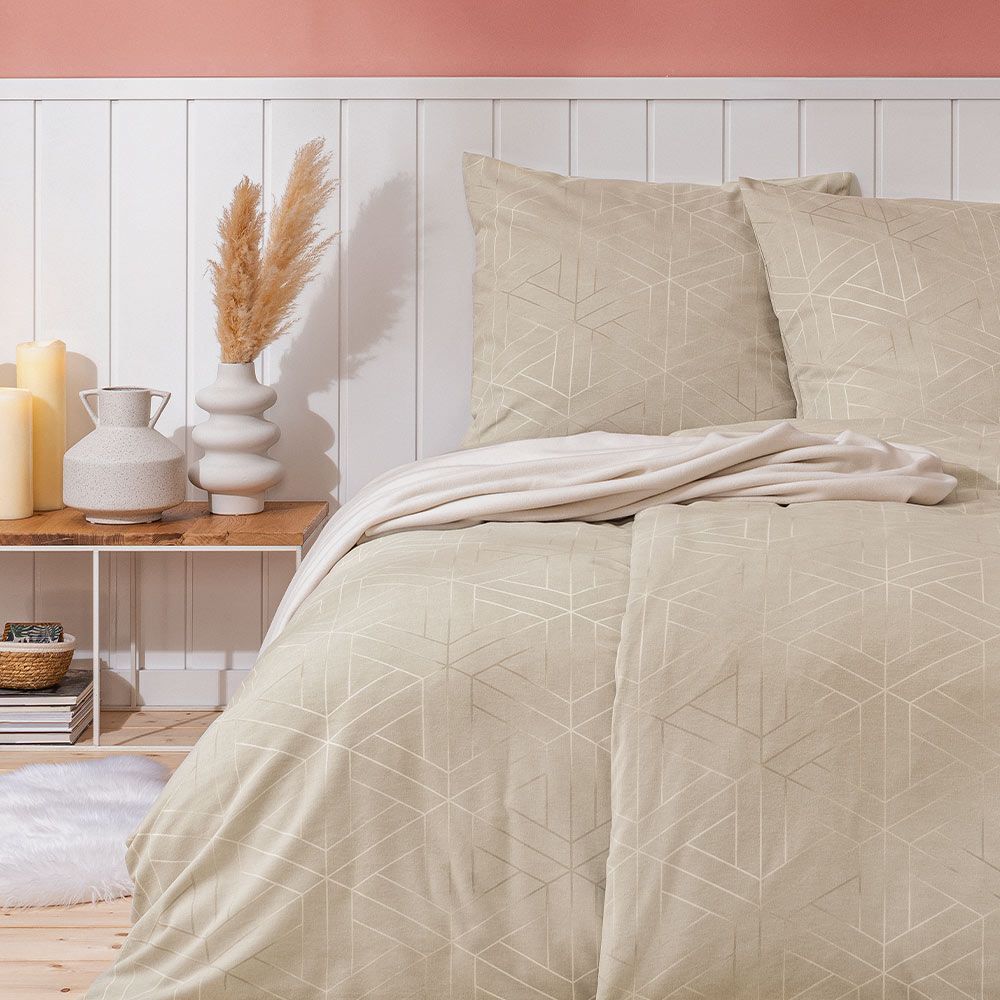 Estella Samt + Seide Flanell Bettwäsche 155x220 Tirolo natur beige Waben 5465-230