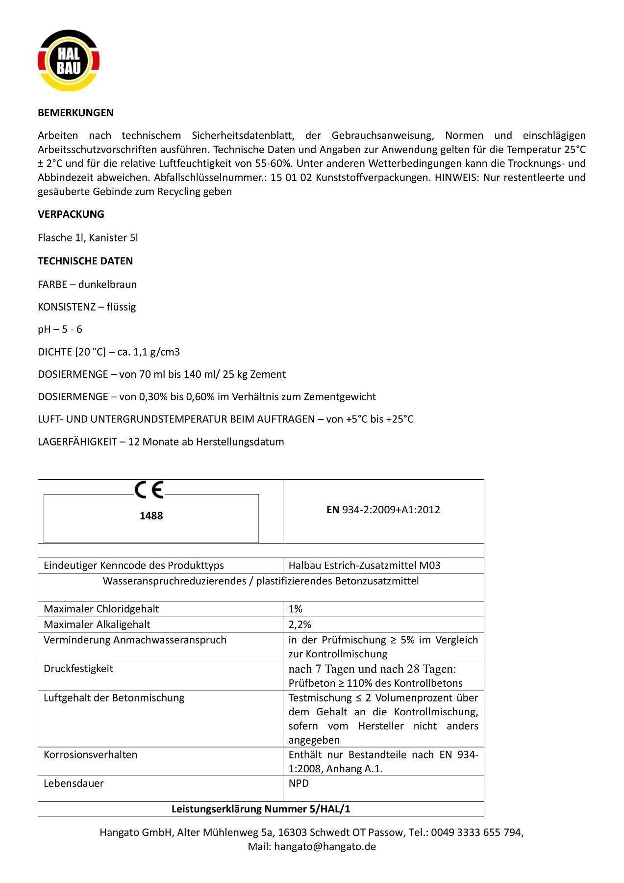 Estrichzusatzmittel 15L Fußbodenheizung Heizestriche Beton Plastifizierer M03