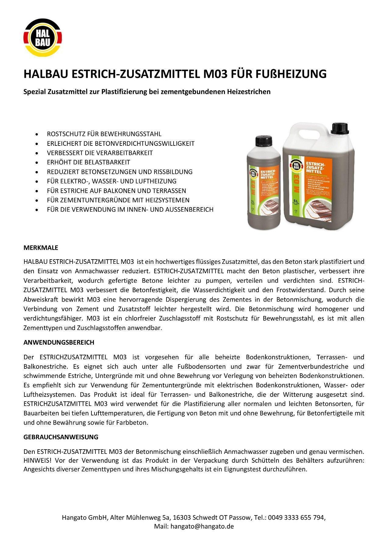 • Estrichzusatzmittel 4L Fußbodenheizung Heizestriche Beton Plastifizierer M03