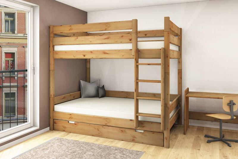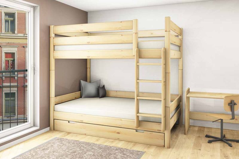 Etagenbett 140x200 cm - Stockholm 2 - Massivholz Kiefer