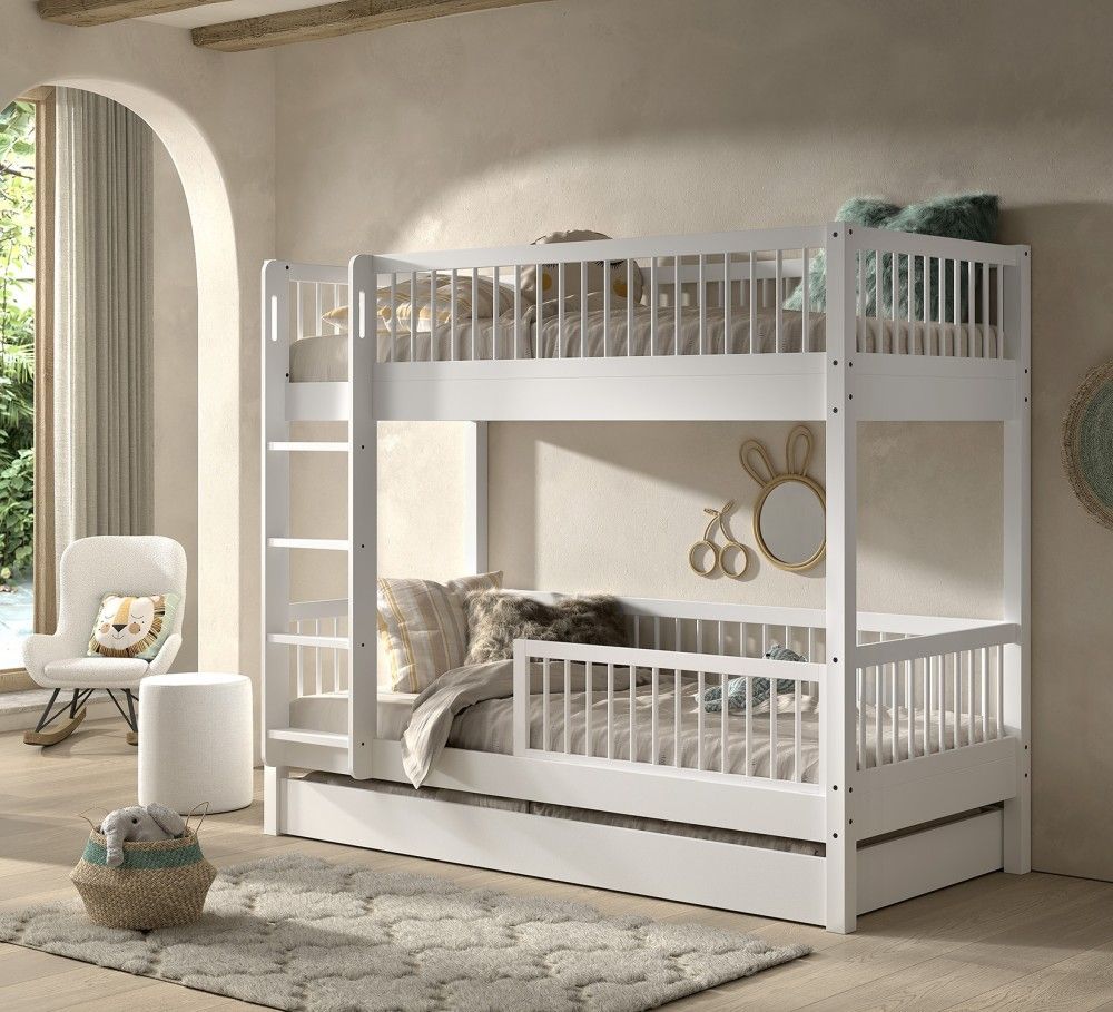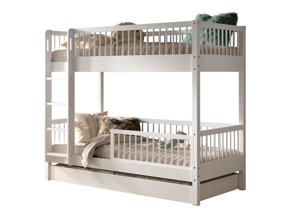 VIPACK Etagenbett 90x200 Bettschublade Rausfallschutz Jugendbett Hochbett Buche Weiß