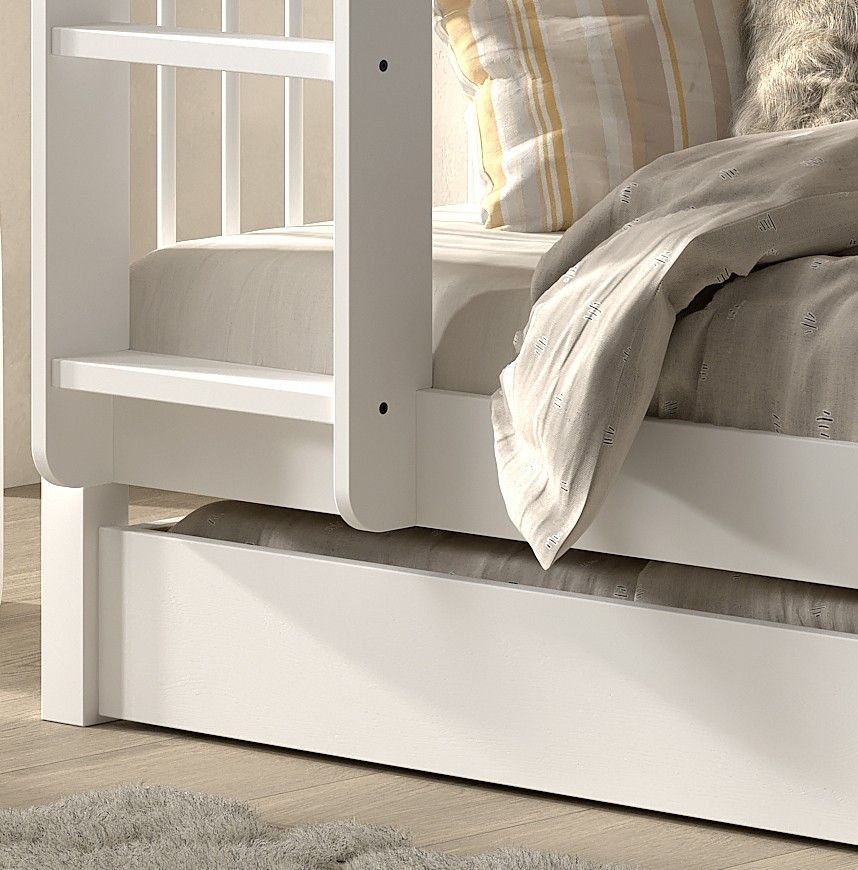 VIPACK Etagenbett 90x200 mit Bettschublade Jugendbett Hochbett Buche massiv Weiß