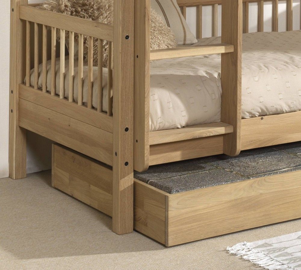 VIPACK Etagenbett 90x200 mit Bettschublade Jugendbett Hochbett Eiche massiv geölt